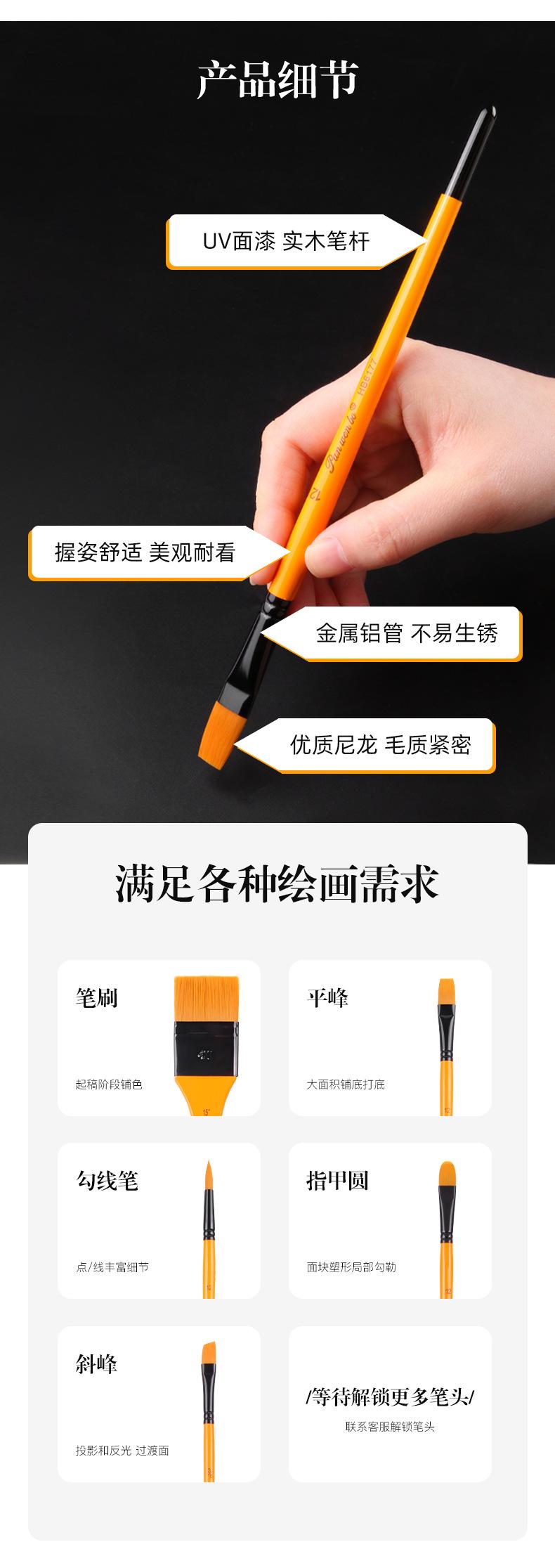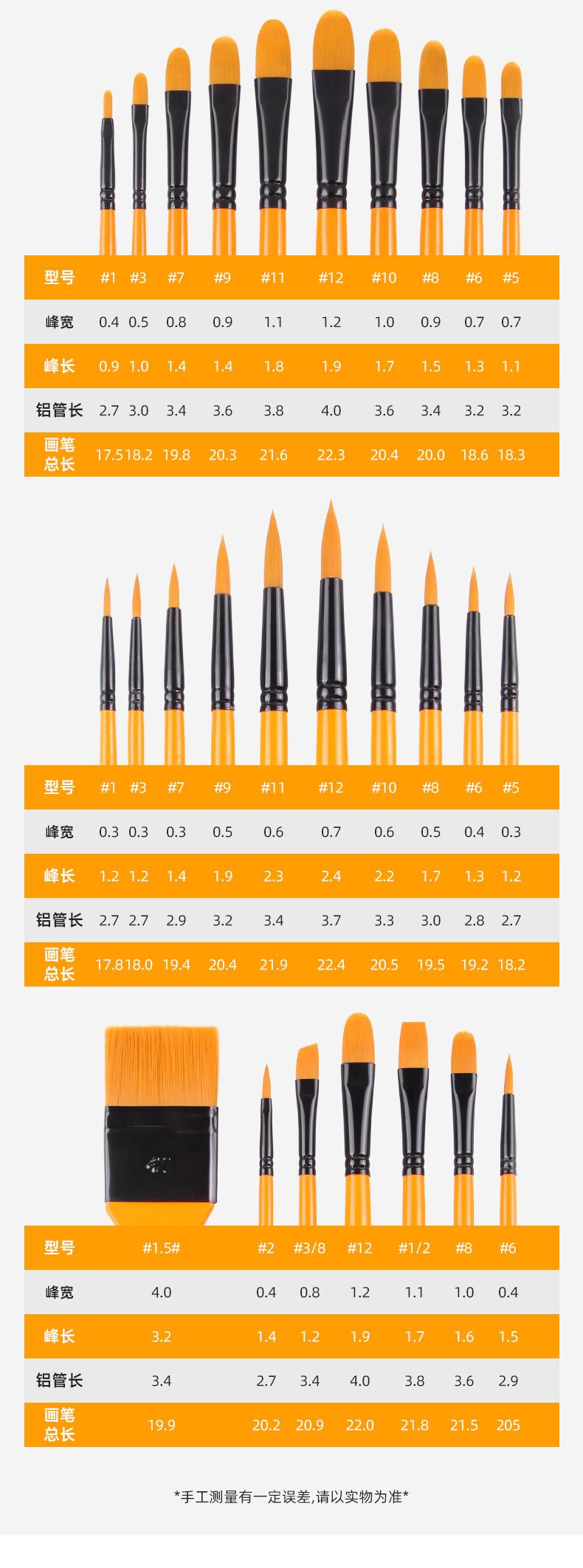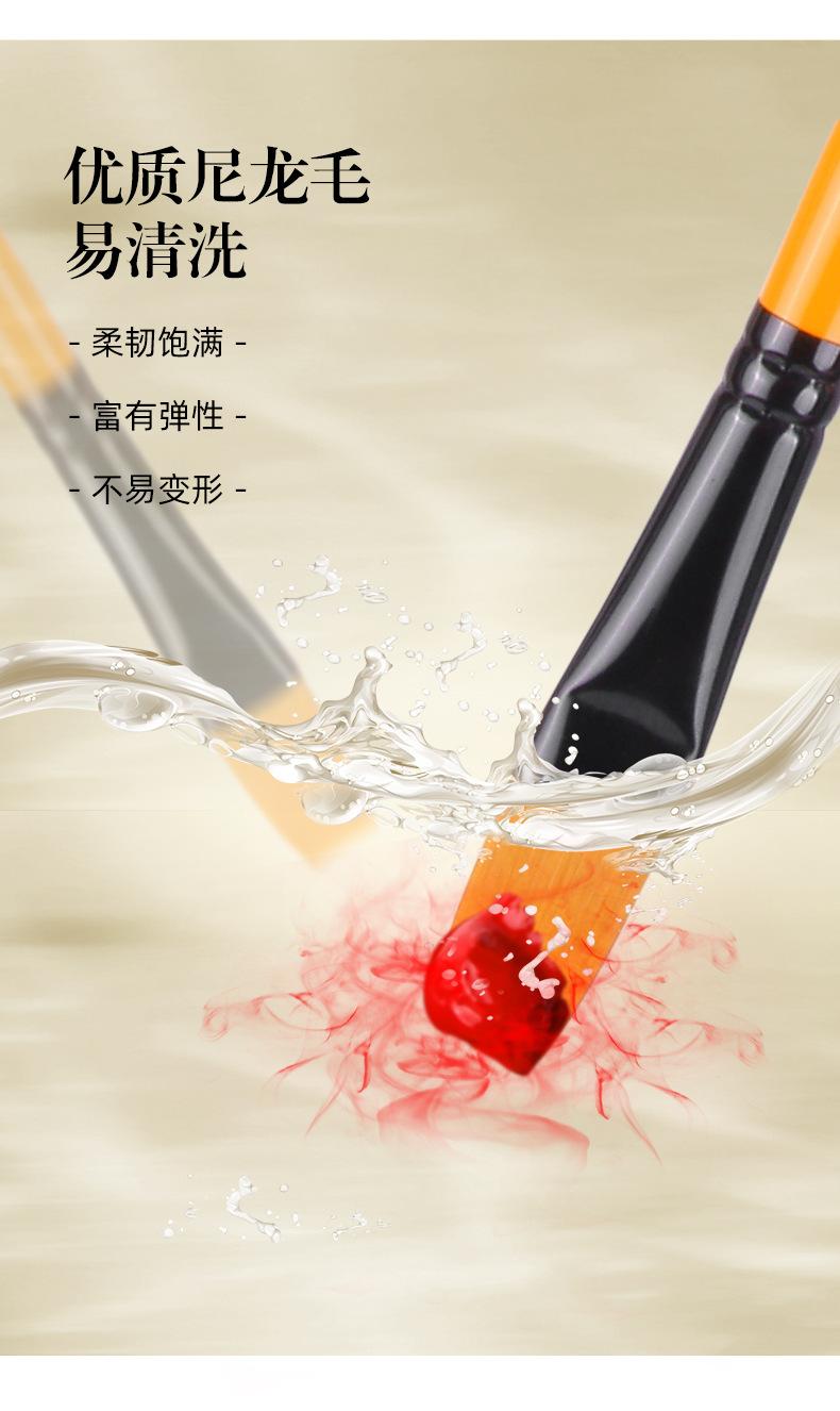 Nuevo juego completo de pinceles de madera maciza de 10 varillas de color naranja para pintar, incluye suministros de arte, gouache de nailon y acuarela.