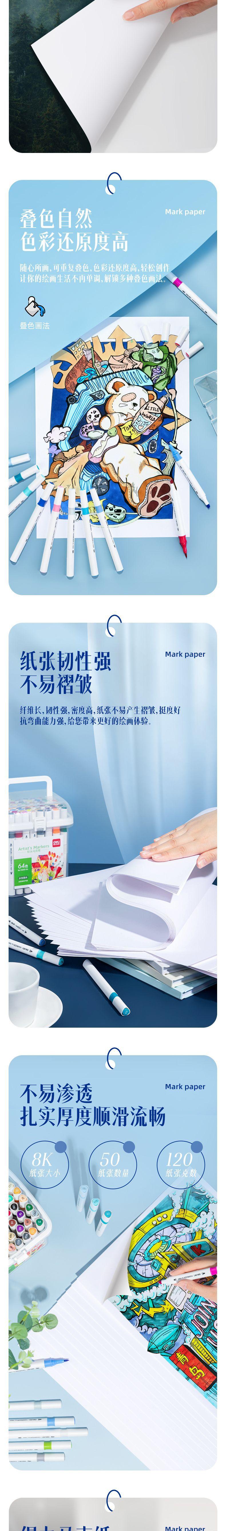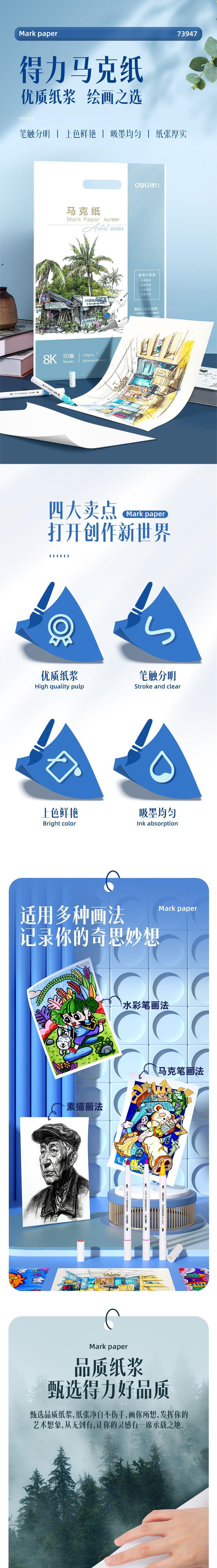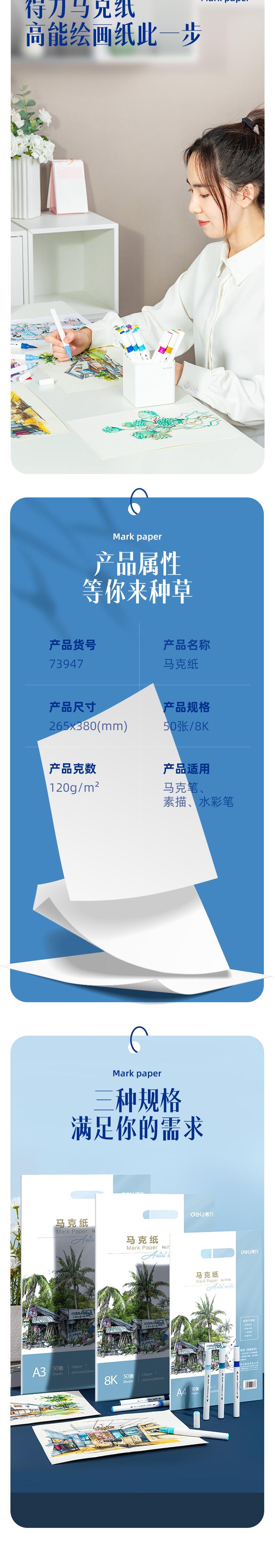 Deli Deli 73947 Mark Paper Papel de dibujo 50 8K Arte Estudiante Boceto Acuarela Pluma Animación pintada a mano con papel