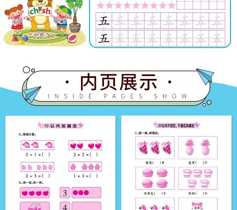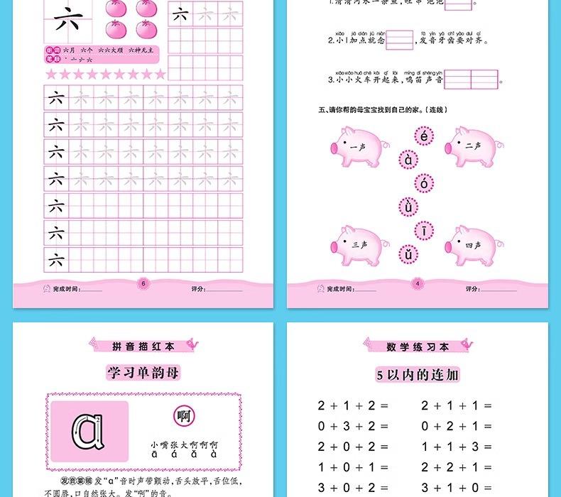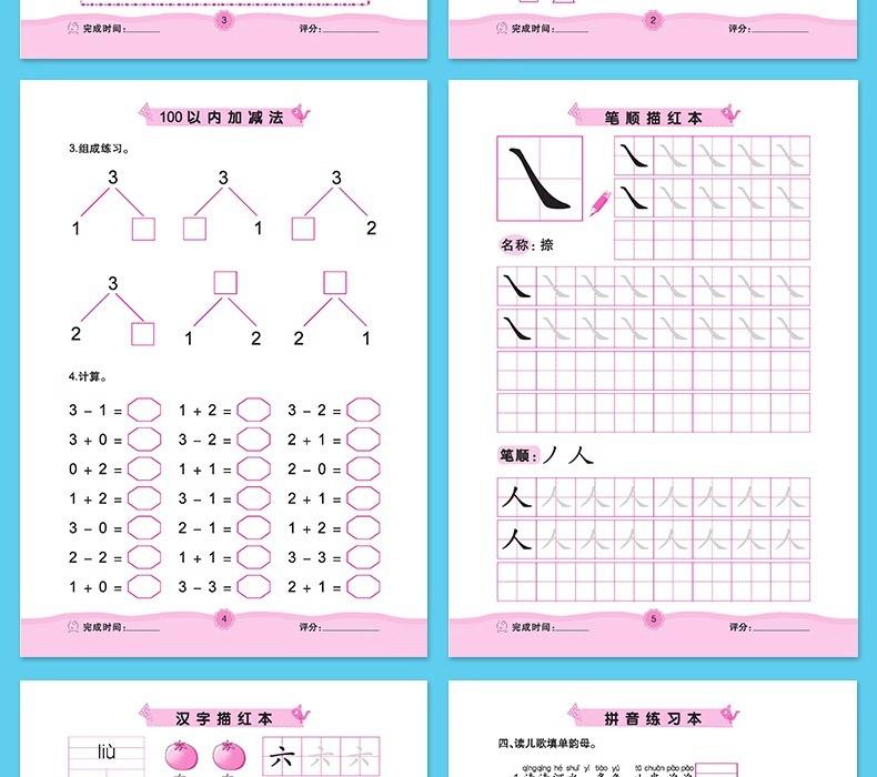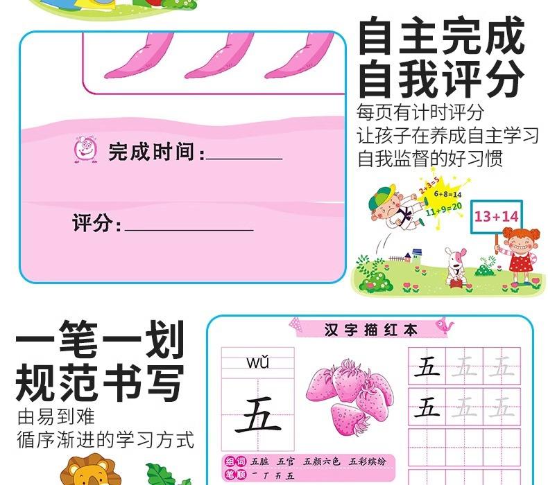 Chinese exercise book, Pinyin exercise book, Math exercise book, Chinese character tracing book, Digital traci...