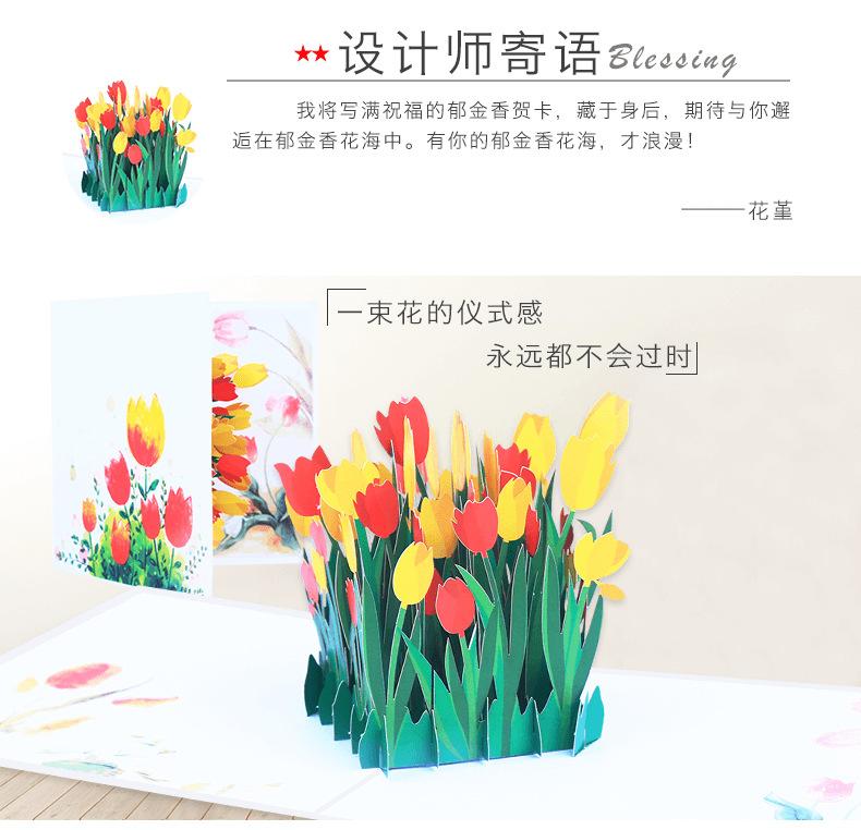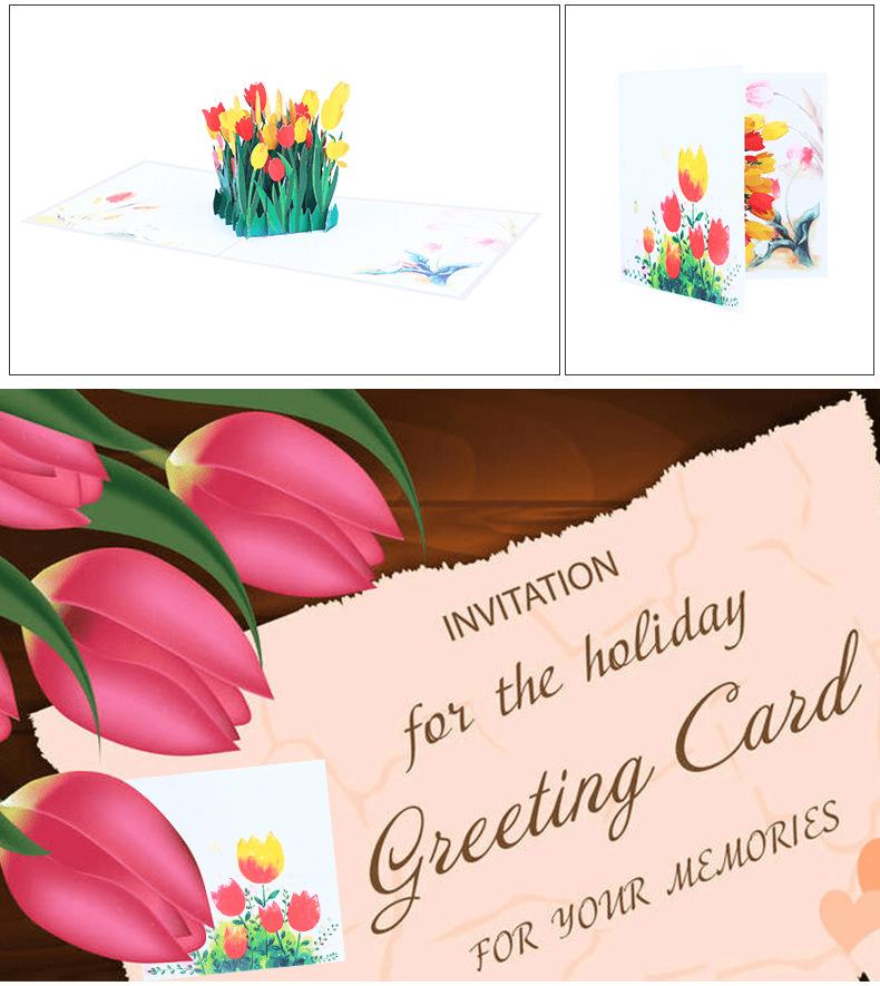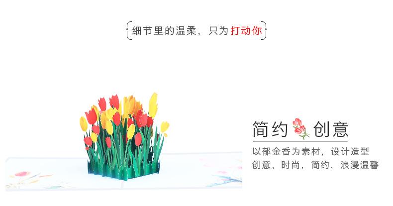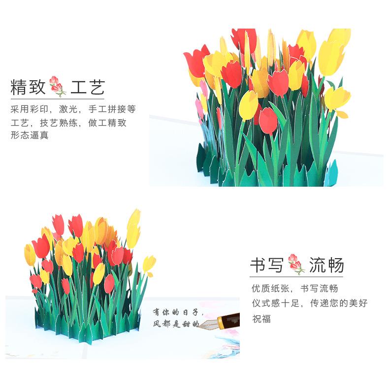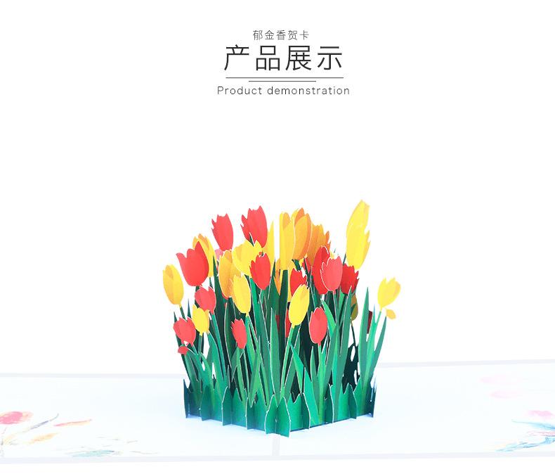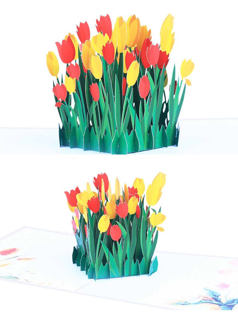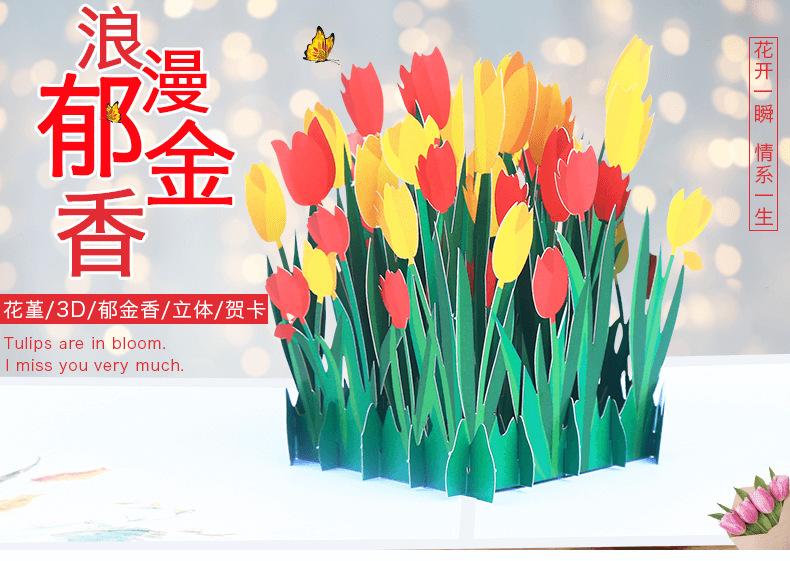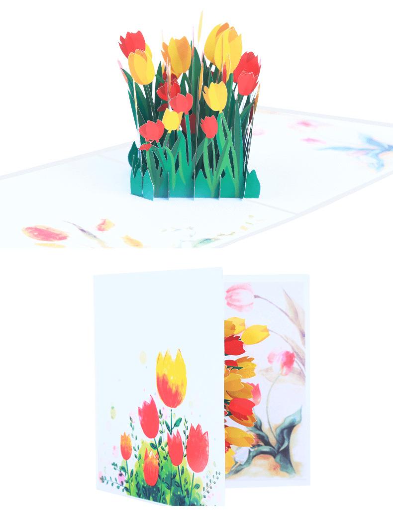 Tarjeta de felicitación tridimensional de cumpleaños 3D para pareja, tarjeta pequeña creativa con ramo de tulipanes, flores y pensamientos, tarjeta de bendición de agradecimiento