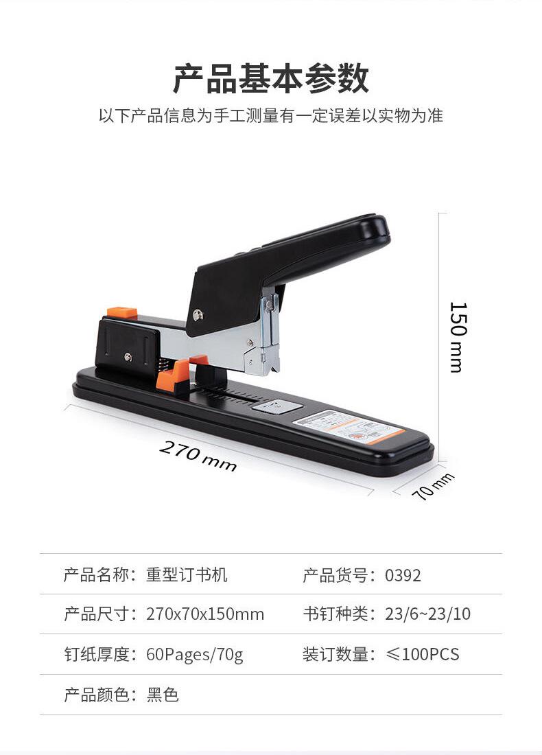 Nombre del producto: Grapadora de alta resistencia Deli 0392 (negra)Unidad: TaiwánCantidad de embalaje: 1/0/0/16