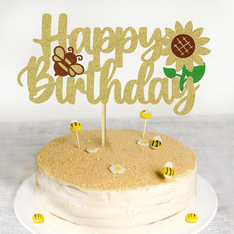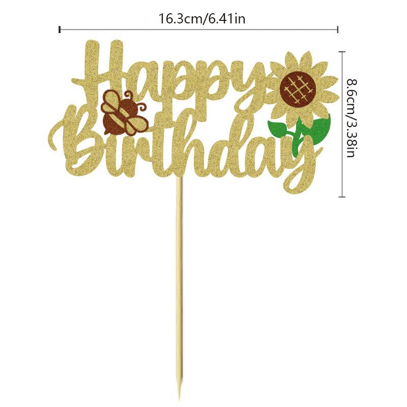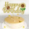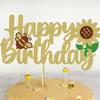 Inserción de tarjeta de pastel de cumpleaños feliz con abeja y girasol transfronteriza, decoración de diseño de escena de fiesta de cumpleaños infantil