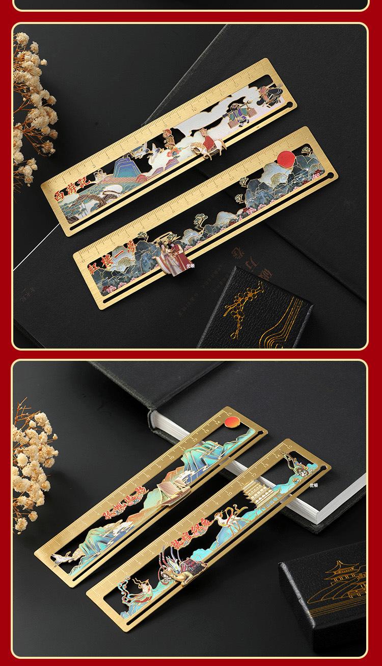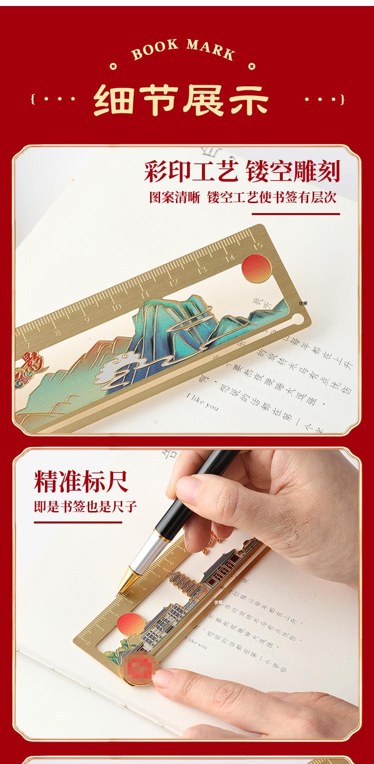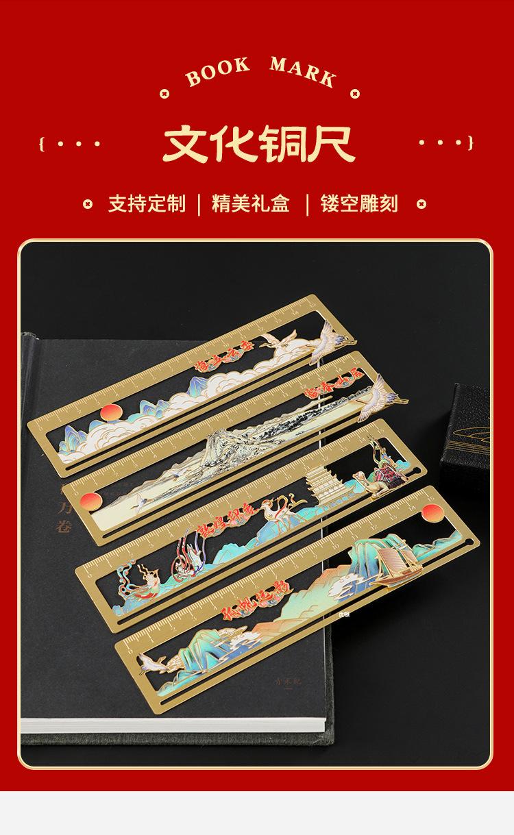 Marcapáginas de metal creativo hueco estilo chino marea nacional graduación conmemorativa regalo creativo caja de latón marcapáginas regla al por mayor