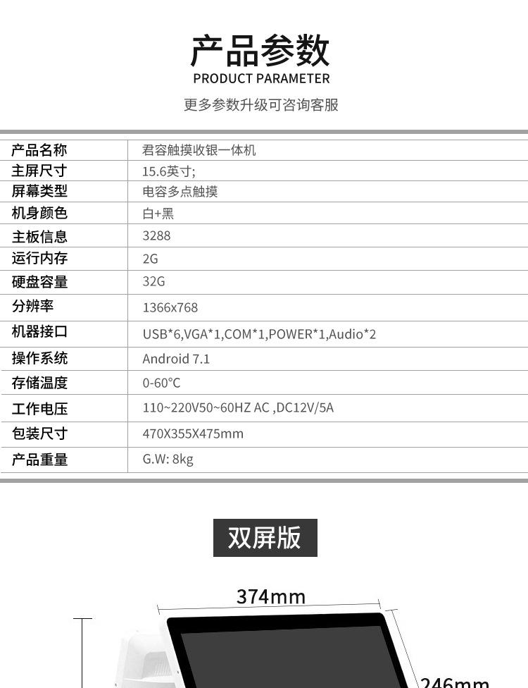 Suministro directo de fábrica Junrong RS588P, caja registradora táctil integrada de 15,6 pulgadas para catering, té con leche y cafetería.