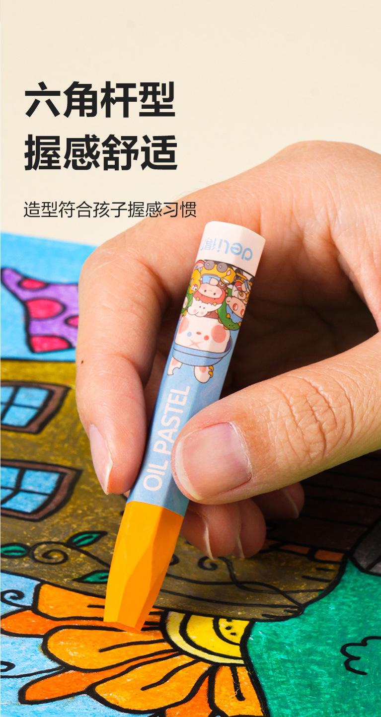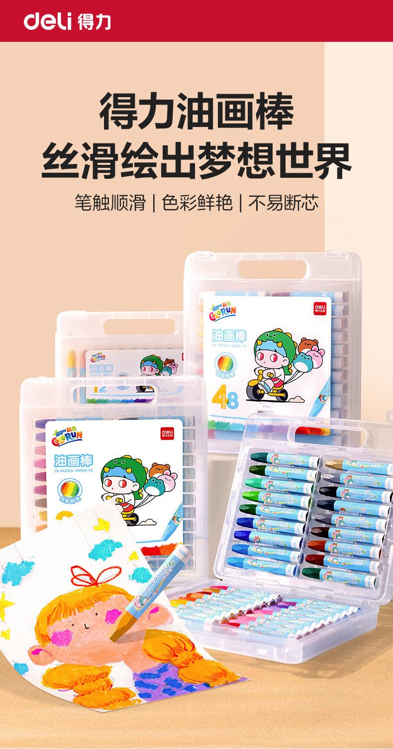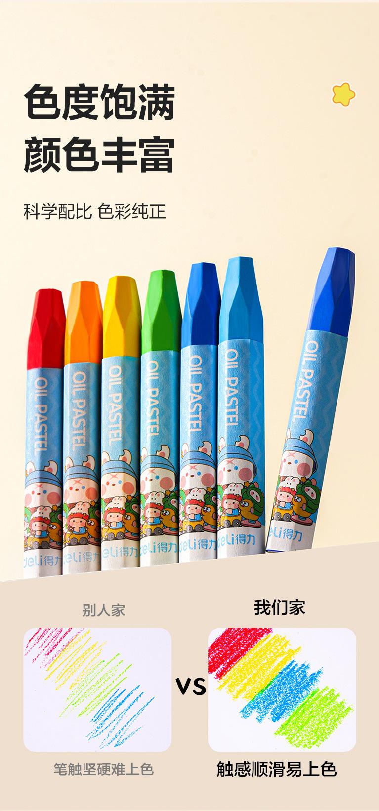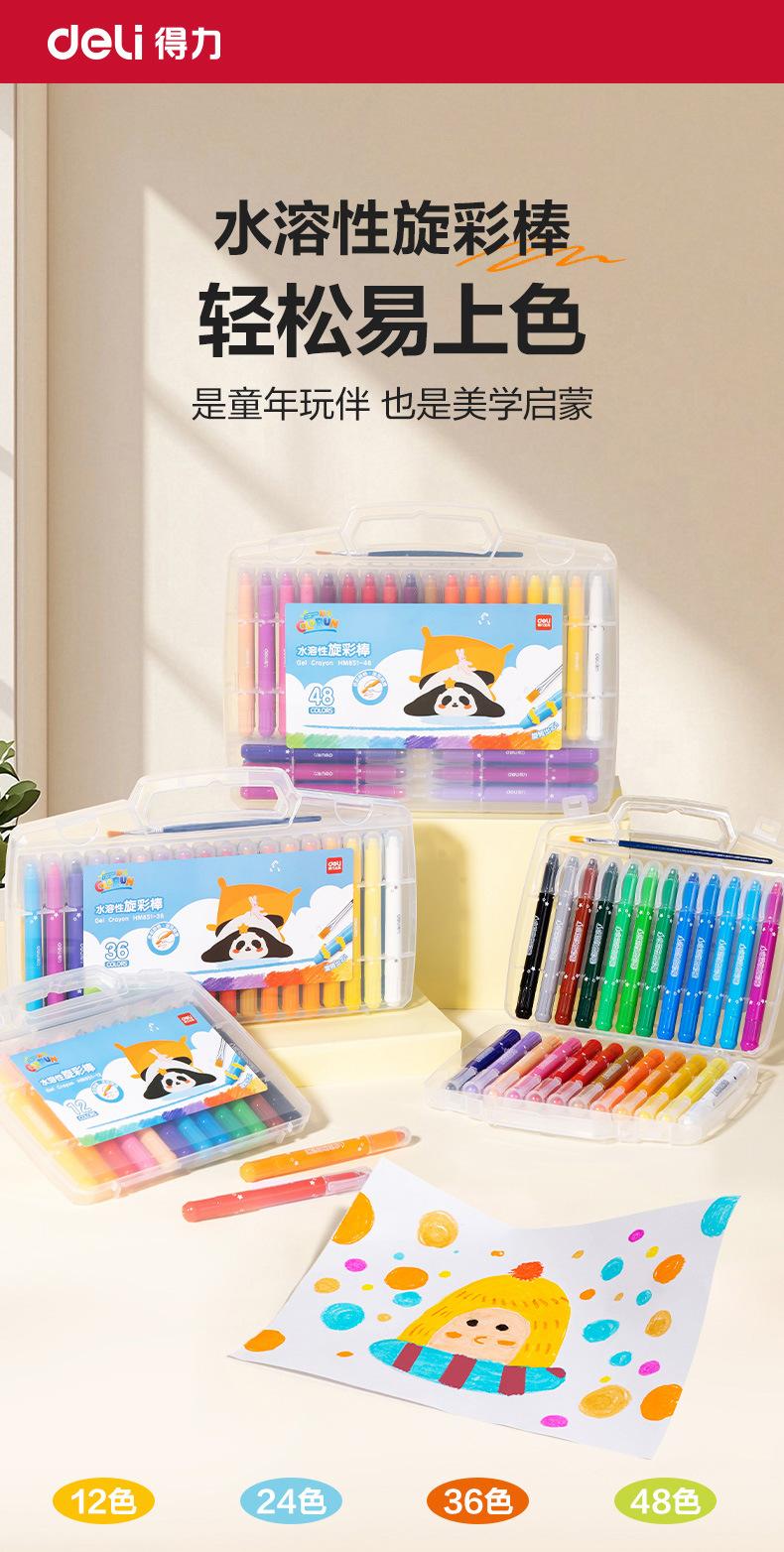 Barra de pintura al óleo soluble en agua Deli 12 colores 24 colores niños lavable manos sucias crayón giratorio set pluma de color mayoreo