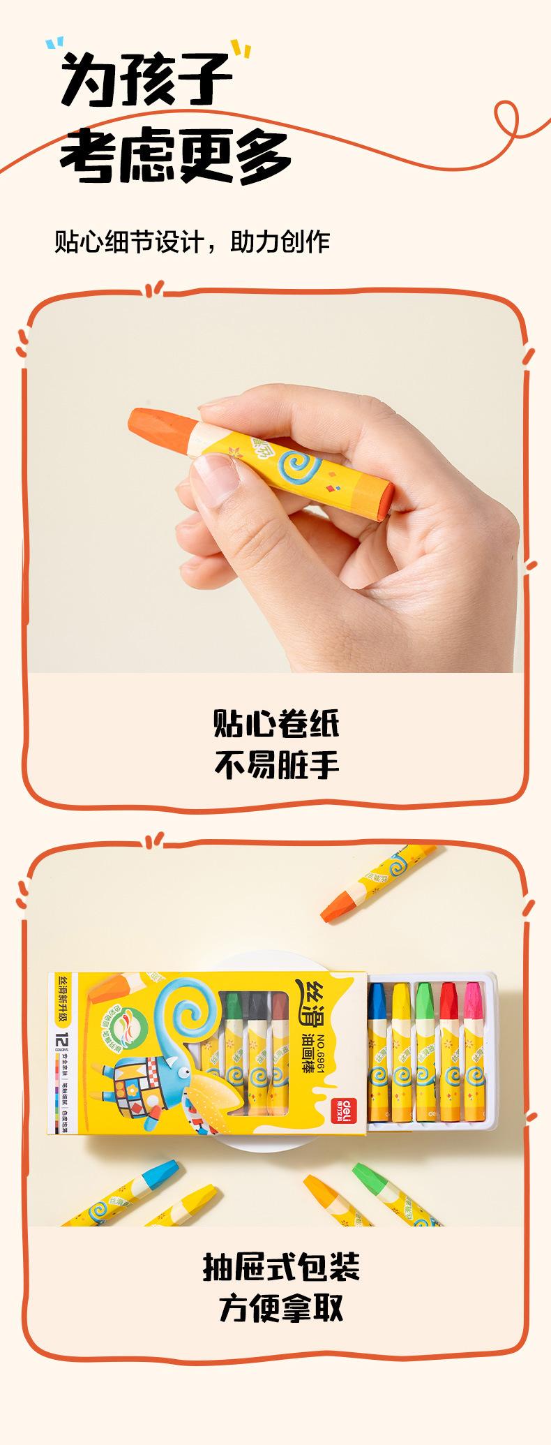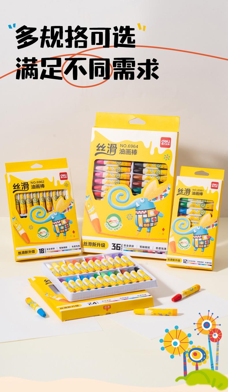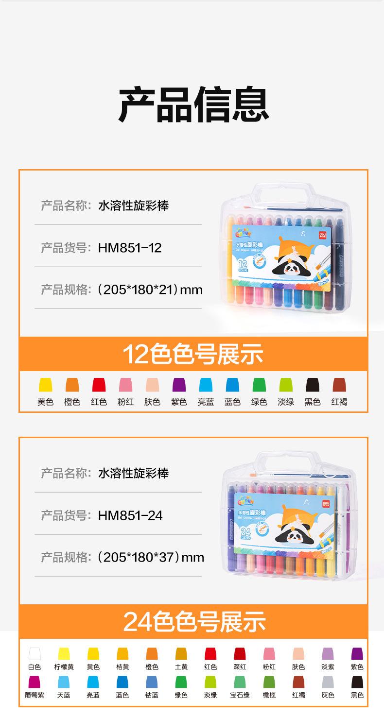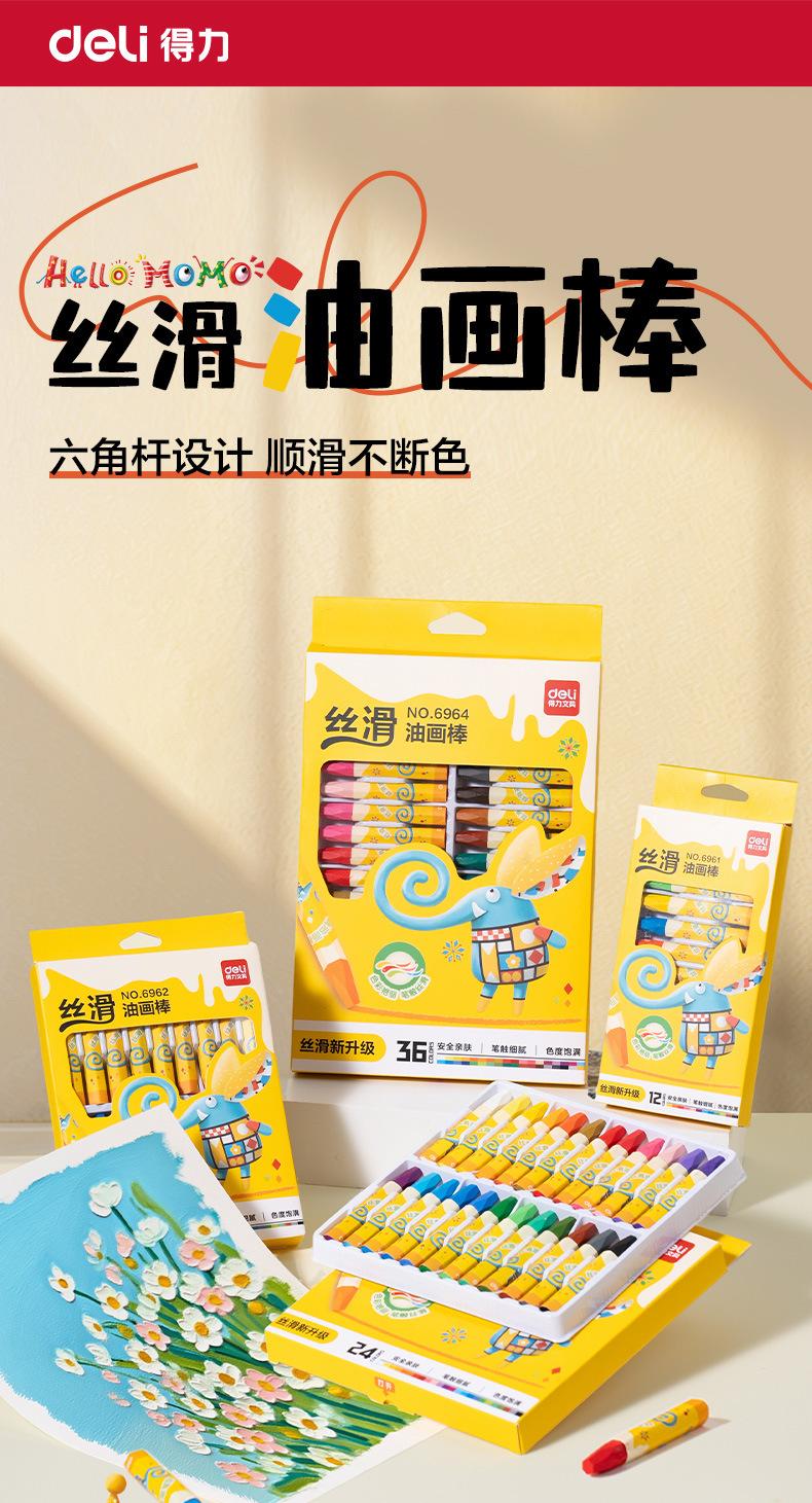 Barra de pintura al óleo soluble en agua Deli 12 colores 24 colores niños lavable manos sucias crayón giratorio set pluma de color mayoreo