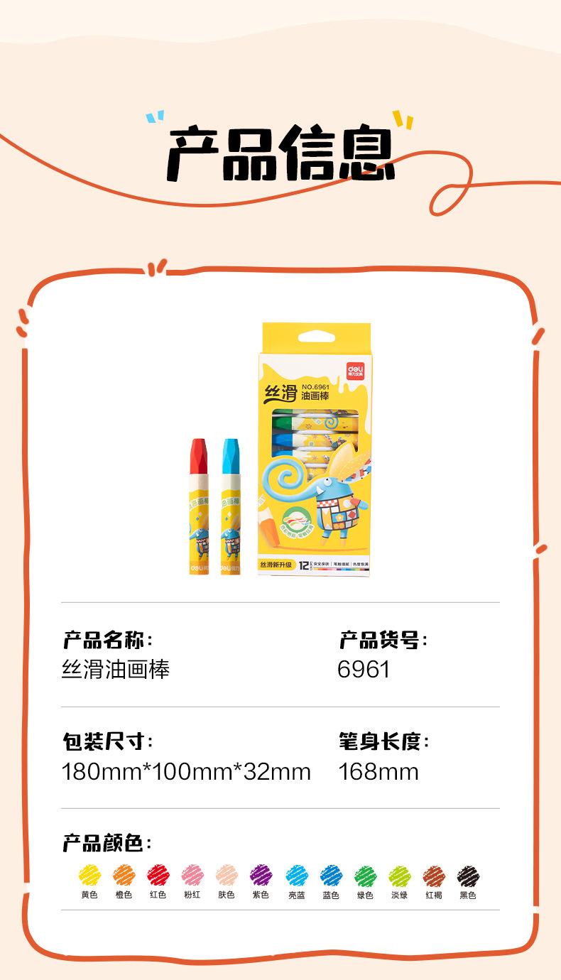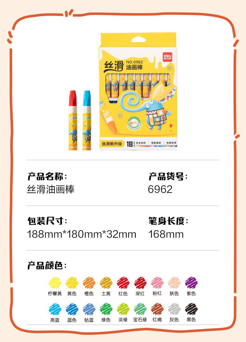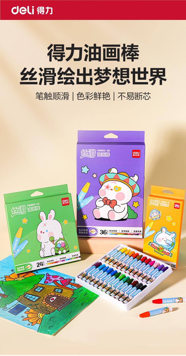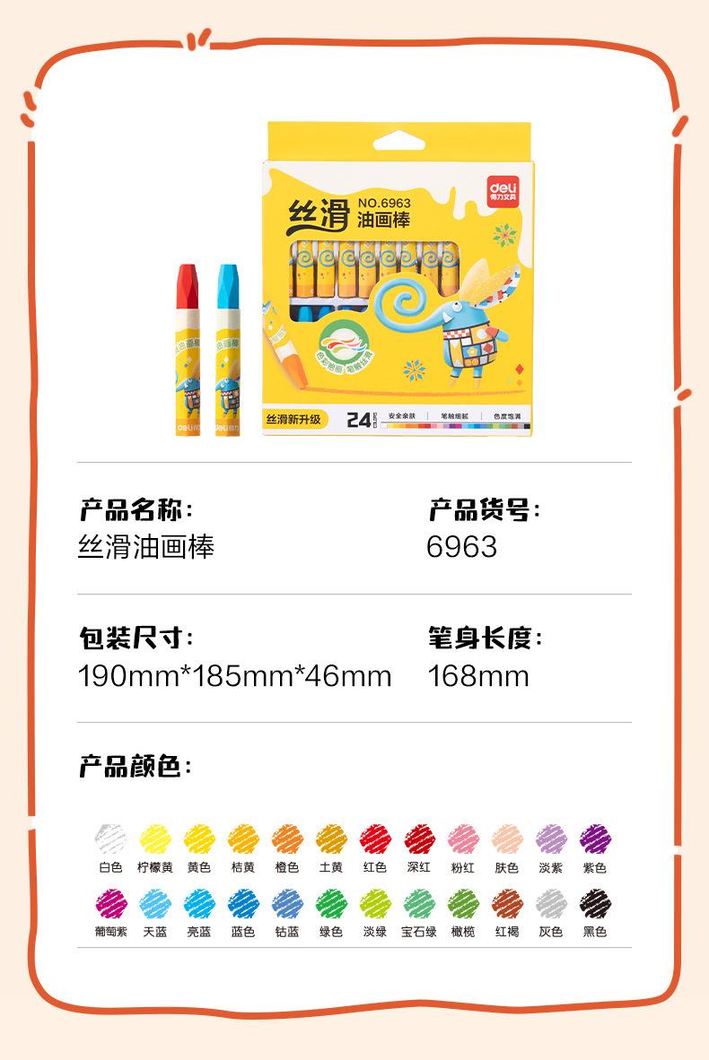 Barra de pintura al óleo soluble en agua Deli 12 colores 24 colores niños lavable manos sucias crayón giratorio set pluma de color mayoreo