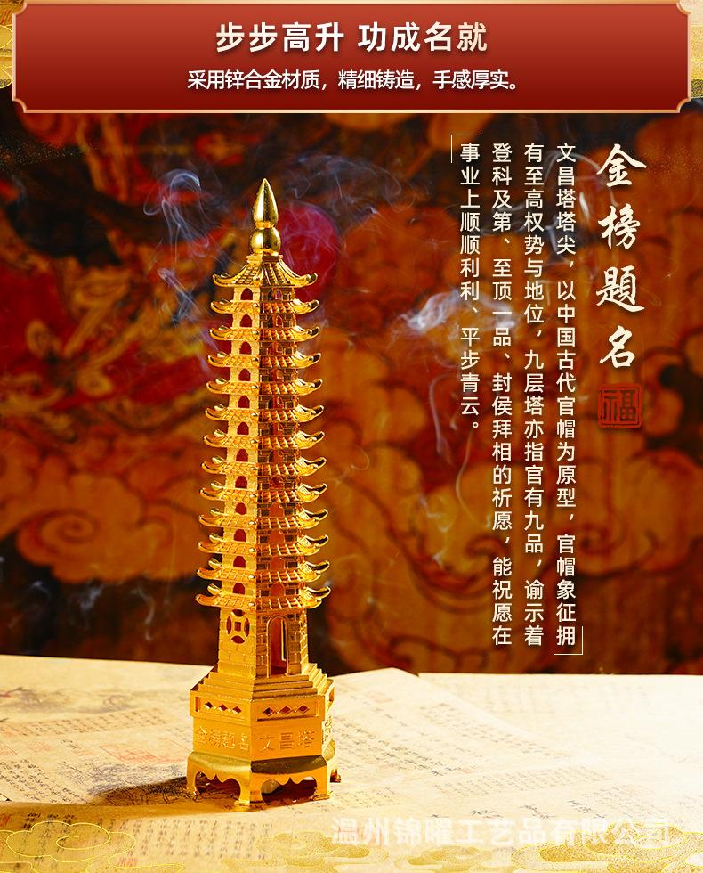 Gran descuento por cantidad, estilos completos. Torre Wenchang de aleación, escritorio de estudiante, adornos decorativos para oficina de estudio, estilo chino.