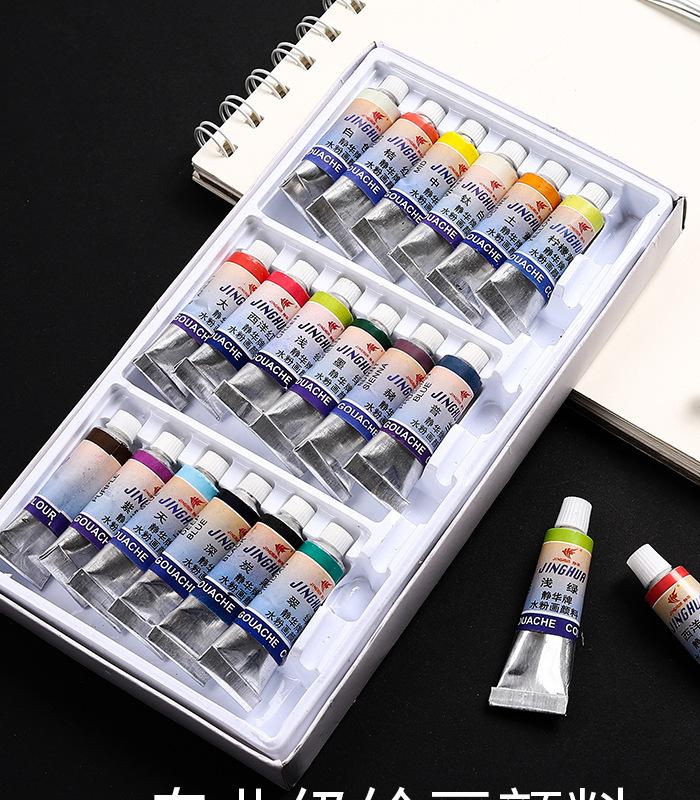 Juego de pintura gouache de 6ml venta directa de fábrica 12/18 colores niños gouache papel caja de herramientas pintura acuarela venta al por mayor