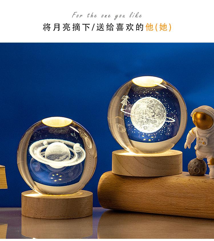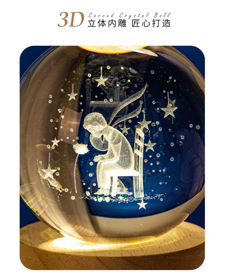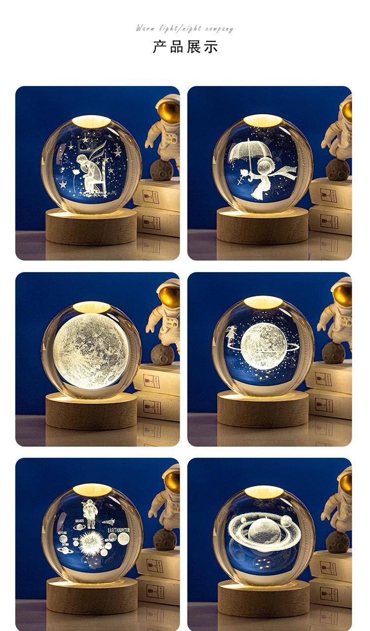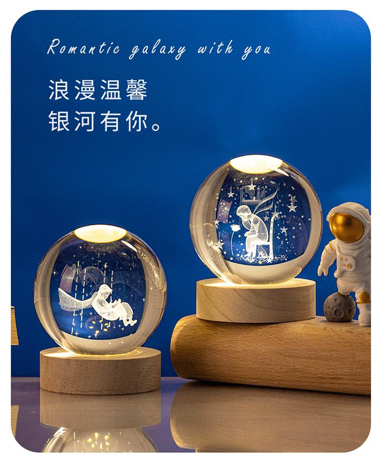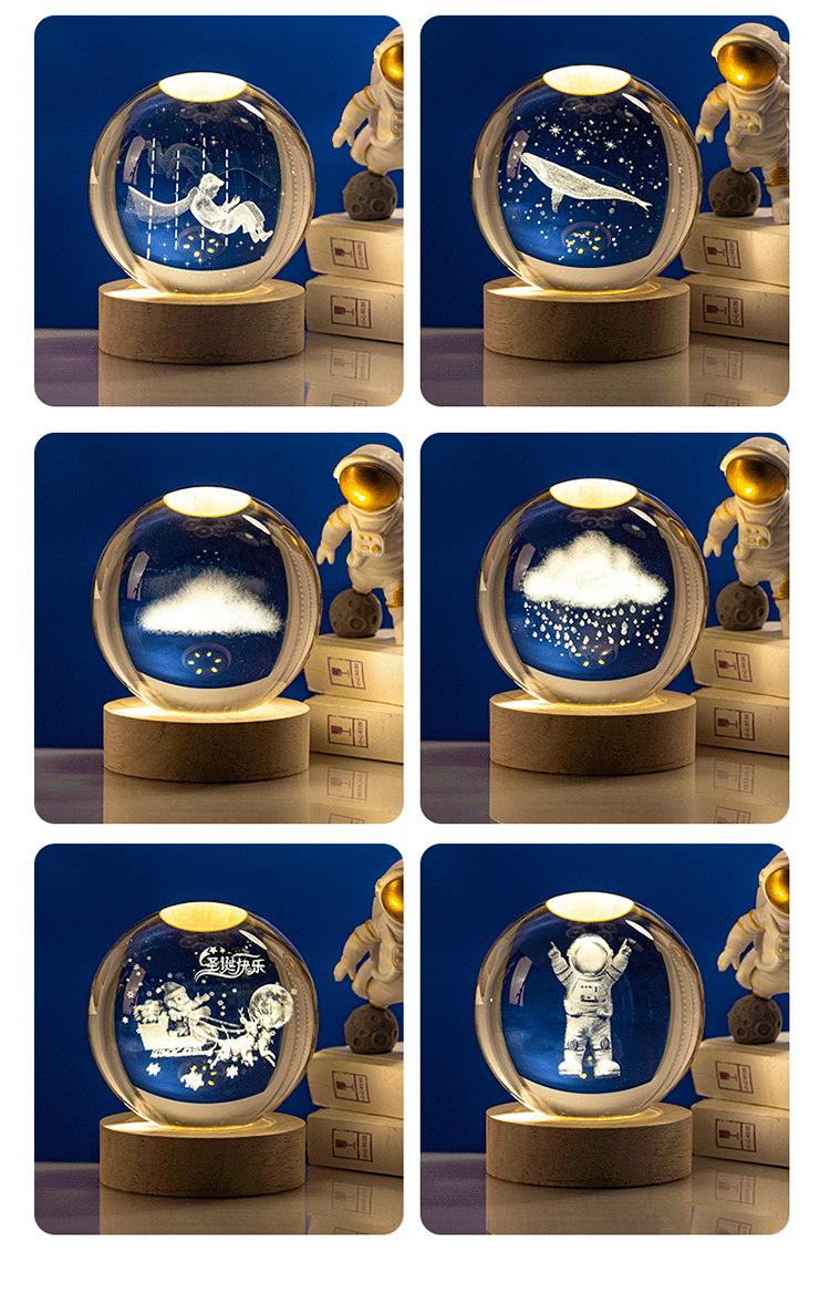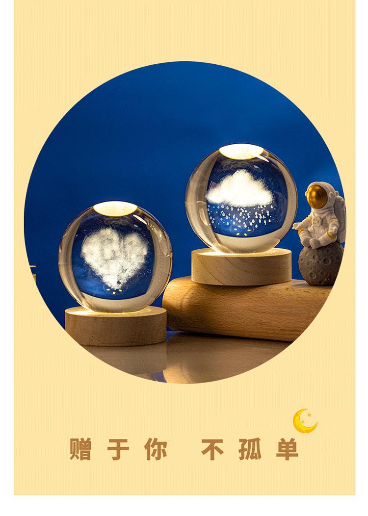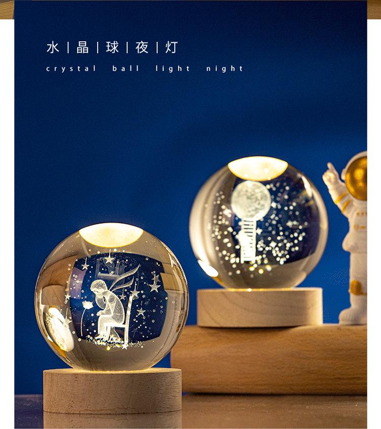 Venta al por mayor transfronteriza Bola de cristal 3D tallada Luz nocturna luminosa Adorno de escritorio creativo Regalo de cumpleaños Regalo de San Valentín