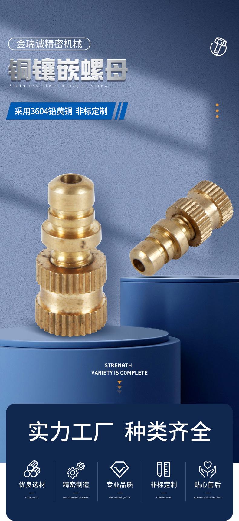 Fabricante de tuercas de cobre con incrustaciones, venta al por mayor, insertos de cobre, tuercas de cobre incrustadas, tuercas de inyección, procesamiento de hardware de precisión de plástico.