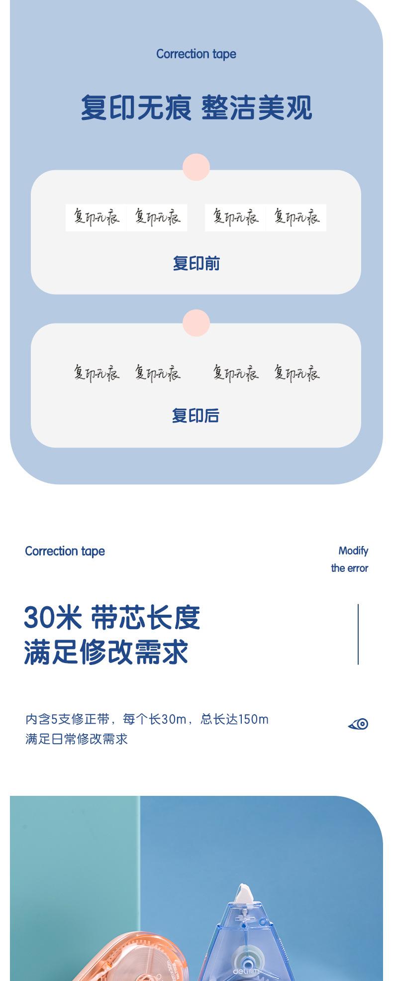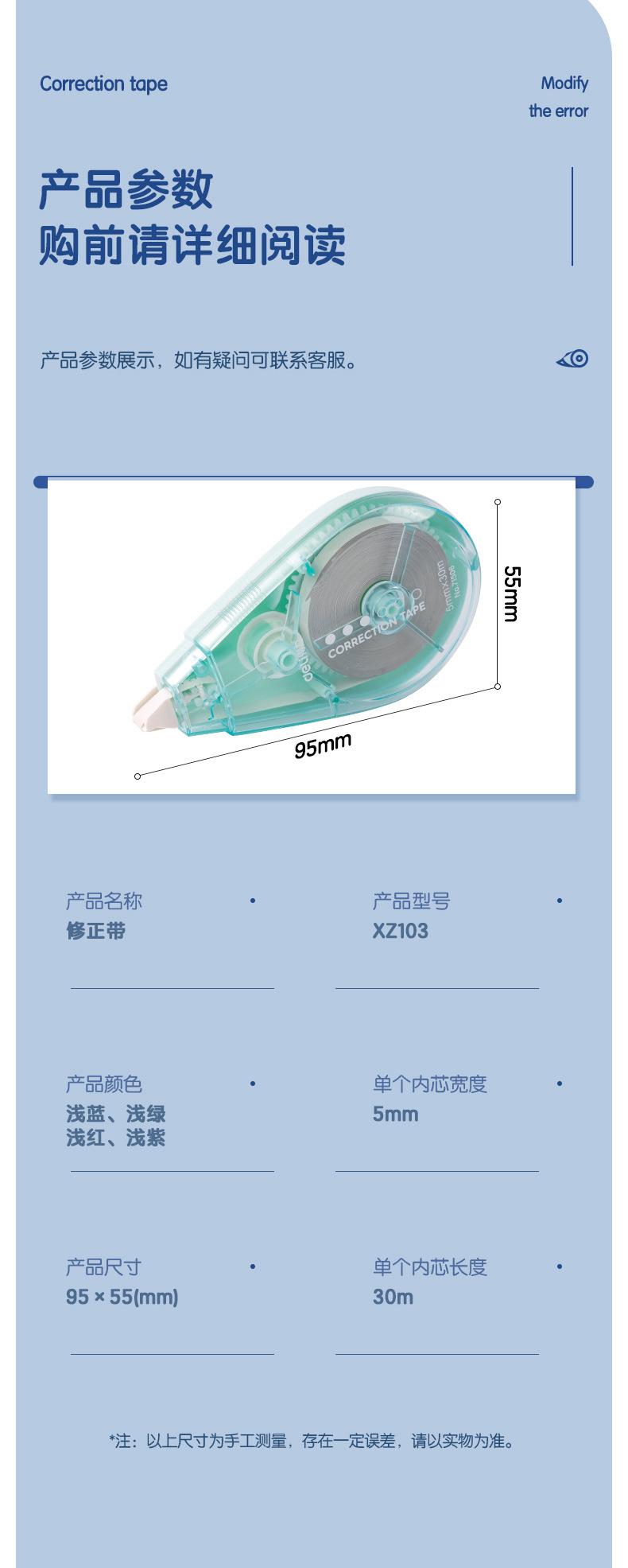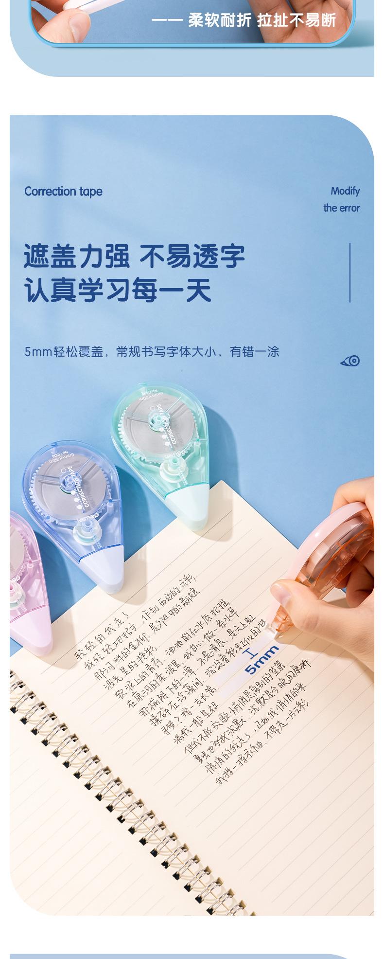 Cinta correctora de papelería Deli XZ103, cinta correctora de color, cinta correctora infrarroja, cinta correctora de gran capacidad.