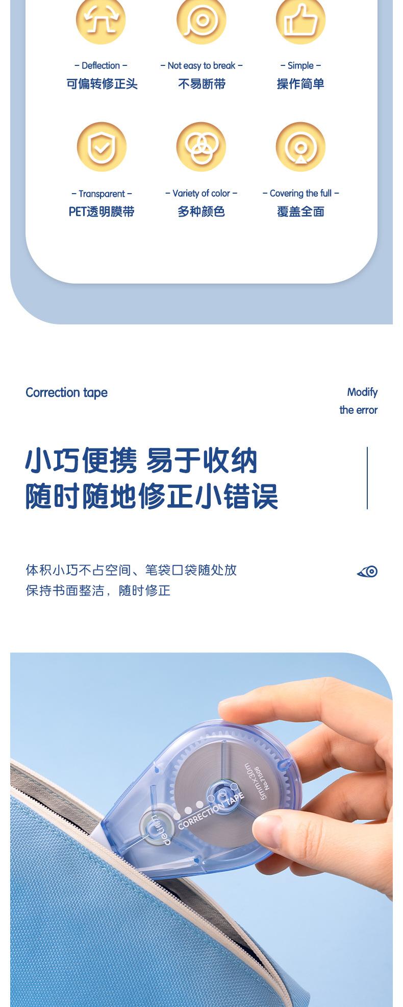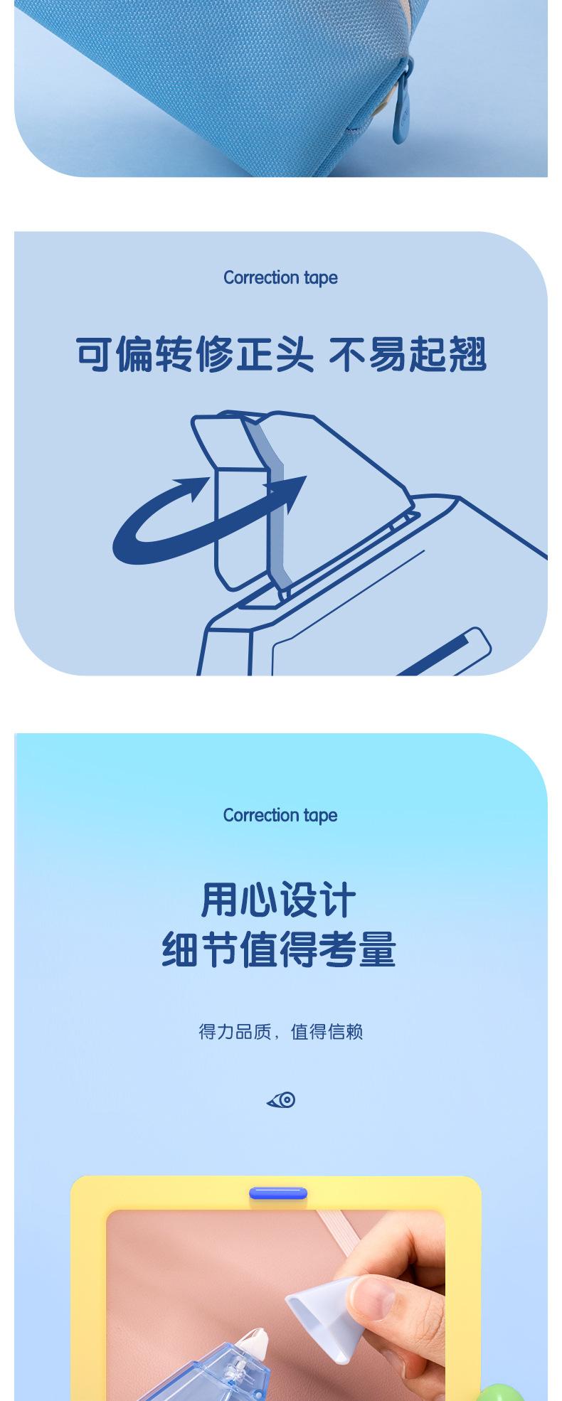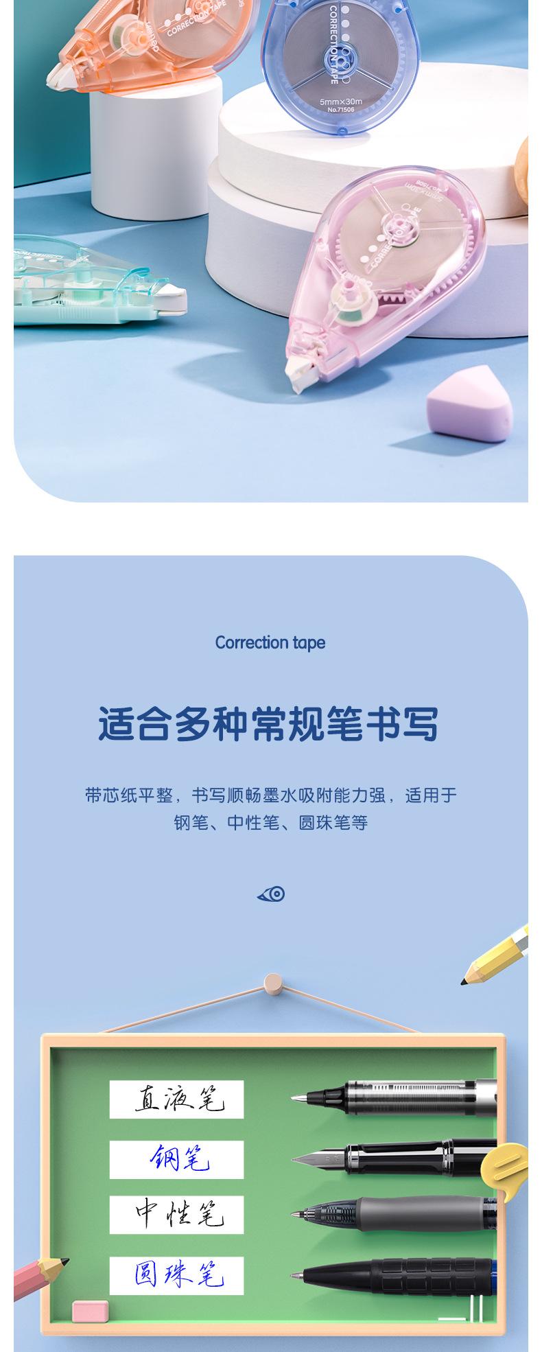Cinta correctora de papelería Deli XZ103, cinta correctora de color, cinta correctora infrarroja, cinta correctora de gran capacidad.