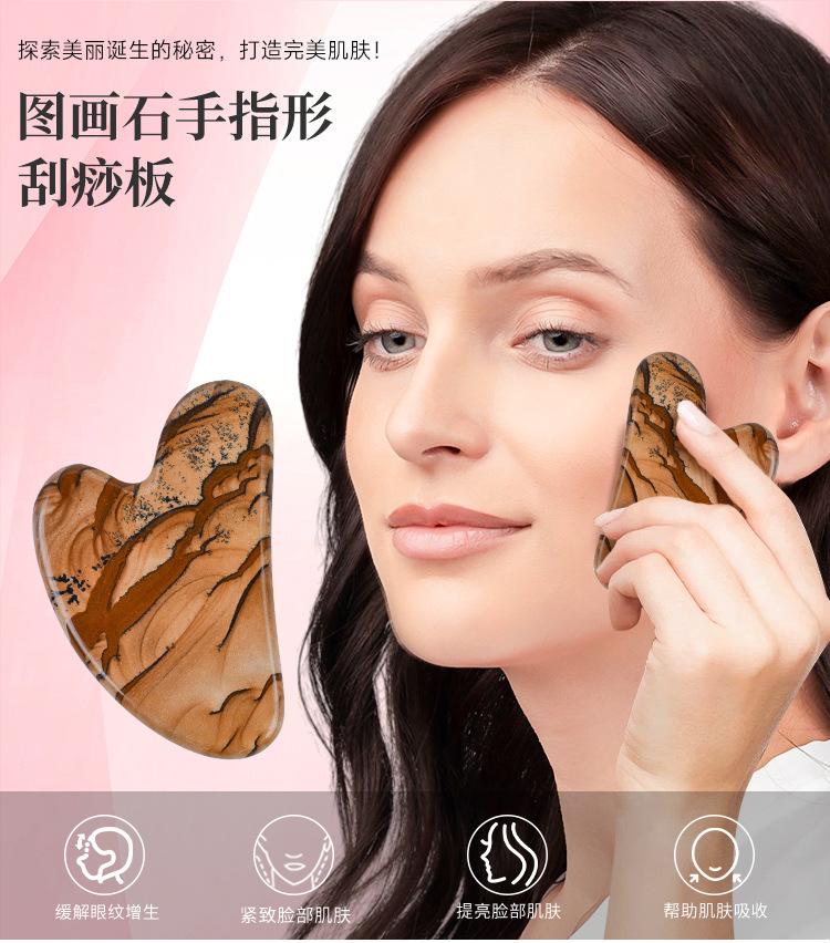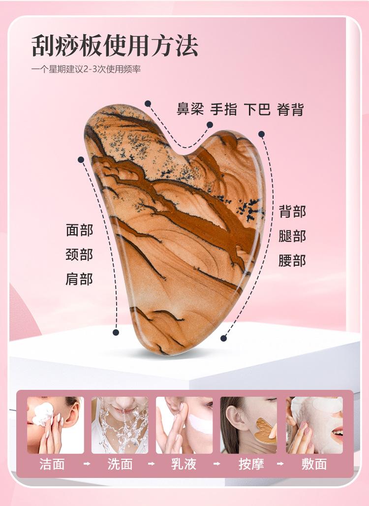 Tabla de raspado de piedra natural con imagen al por mayor, disponible para el cuerpo, meridianos, yema de huevo, tabletas de jade para raspar, masaje facial fino para ojos.