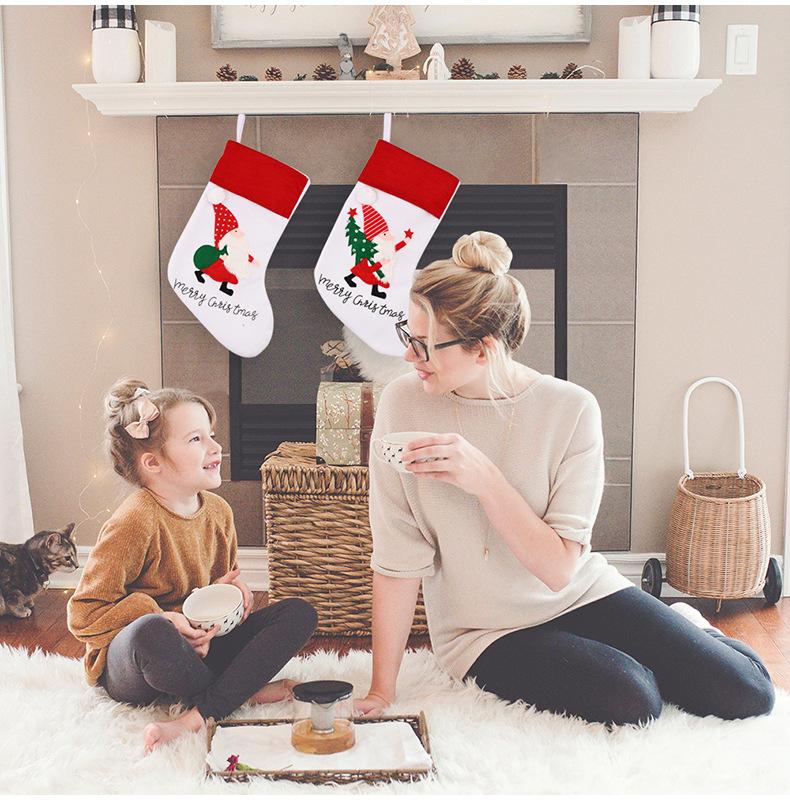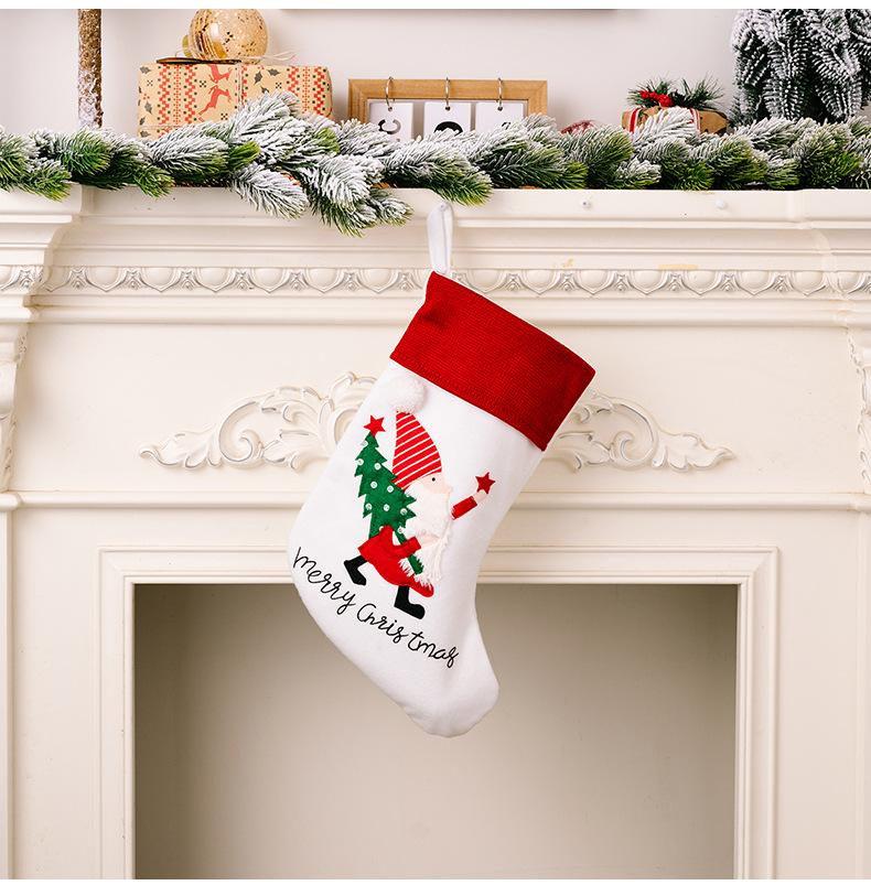 Nuevos Suministros de Decoración Navideña Transfronterizos Mochila de Papá Noel de Dibujos Animados Calcetines Navideños Muñeco Bordado Calcetines de Regalo