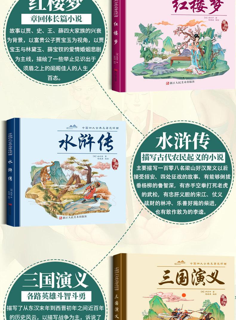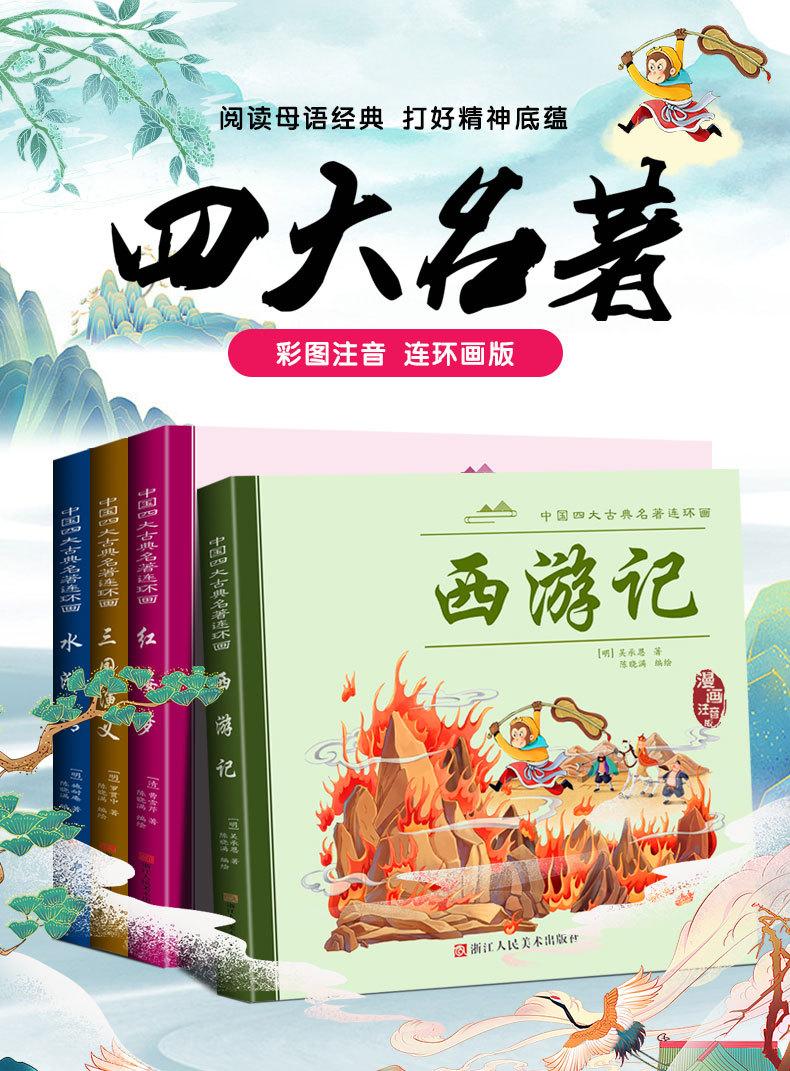 Cuatro grandes clásicos chinos, cómics, dibujos animados clásicos, libros infantiles ilustrados, A la orilla del agua, Viaje al Oeste