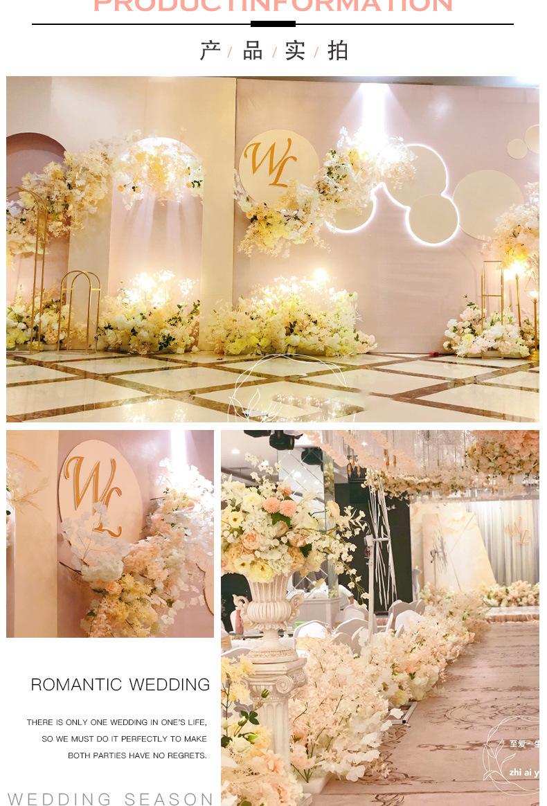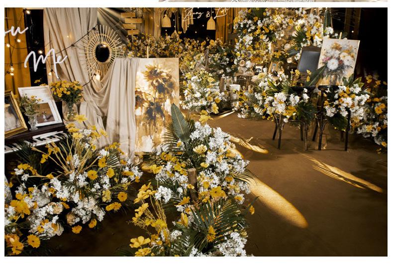 Boda serie beige plástico flor artificial escenario flor amarilla fila decoración flor fondo flor decorativa