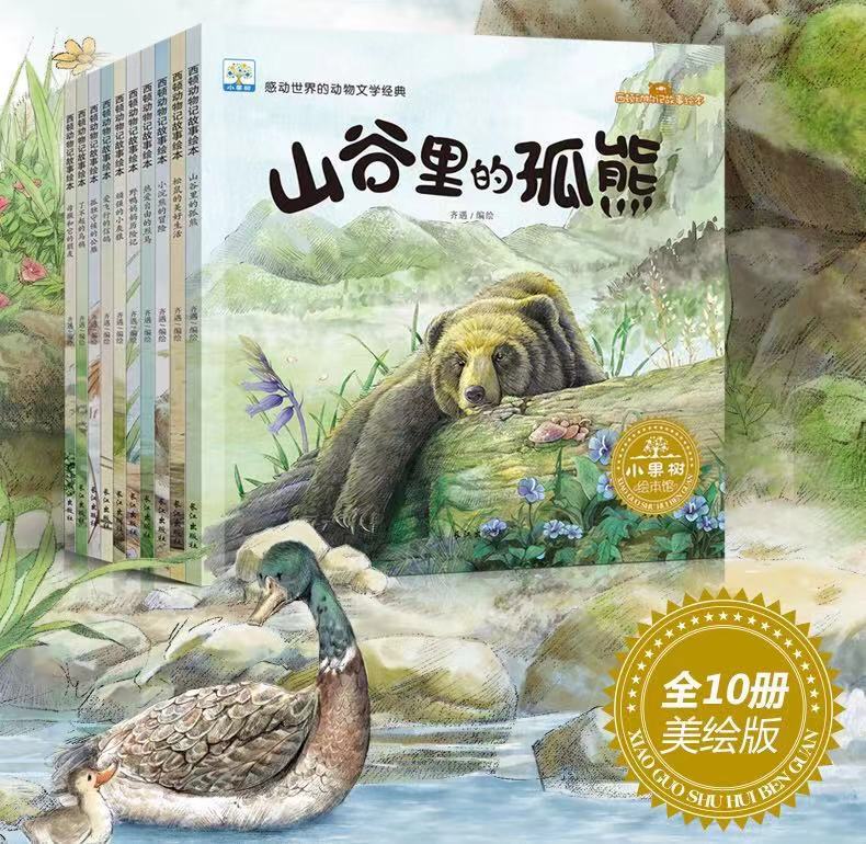 Libro ilustrado para niños Seton Animal Story Libro ilustrado Conjunto completo de 10 libros Extracurriculares para niños Ciencia popular Enciclopedia animal Genuino