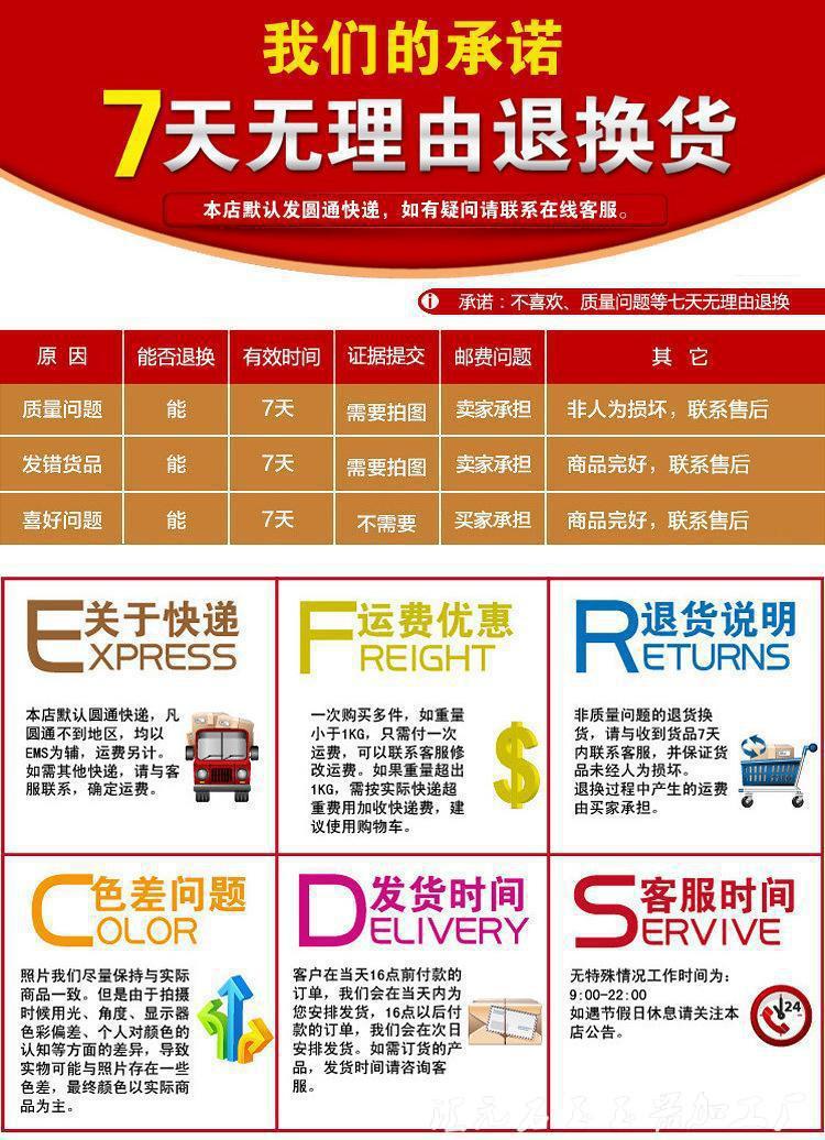 1. ¿Cuál es el precio mínimo de aprobación? El importe de la compra debe ser superior a 200 yuanes para ser considerada venta al por mayor. Aceptamos lotes mixtos, con un total de más de 10 unidades, pero con un importe total de 200 yuanes. (Las cajas y bolsos no están incluidos en el precio). 2. ¿Puedo comprar 2 piezas? ¿Puedo vender al por mayor si la cantidad es inferior a 200 yuanes? Sí, podemos hacer lotes mixtos si la cantidad supera los 200 yuanes. 3. ¿Cómo comprar? (1) Usuario registrado (2) Desde la columna de categoría de la izquierda, seleccione el producto que le guste y colóquelo en el carrito de compras. (3) Envíe el pedido, seleccione el método de pago y pague (4) Envíe la mercancía después de confirmar el pago. 4、Cómo transportar¿? Enviamos todos nuestros productos mediante envío exprés, que se entregan directamente a su domicilio. Disfrute de una compra cómoda y cómoda sin salir de casa, sin tener que desplazarse para obtener sus productos. Para ahorrarle en gastos de envío, nos pondremos en contacto con usted para informarle sobre la logística de los productos de la competencia. Usted mismo se encargará de la logística. Nuestros servicios exprés STO y EMS económico pueden enviar piezas estándar EMS a lugares donde no es posible realizar envíos exprés. 5、método de pago¿? 1. Pago con Alipay: Primero, abone el dinero a Alipay. Tras recibir la mercancía, confirme la recepción. Si no está satisfecho con la mercancía, puede solicitar un reembolso o una devolución. ¡Muy práctico! ② Pago por banca en línea: Si ha solicitado la banca en línea, puede enviarnos el dinero directamente en línea y luego notificar al personal de atención al cliente. Una vez recibido el pago, enviaremos la mercancía el mismo día o al día siguiente. 3.Transferencia bancaria: Después de la transferencia bancaria, notifíquenos la entrega.