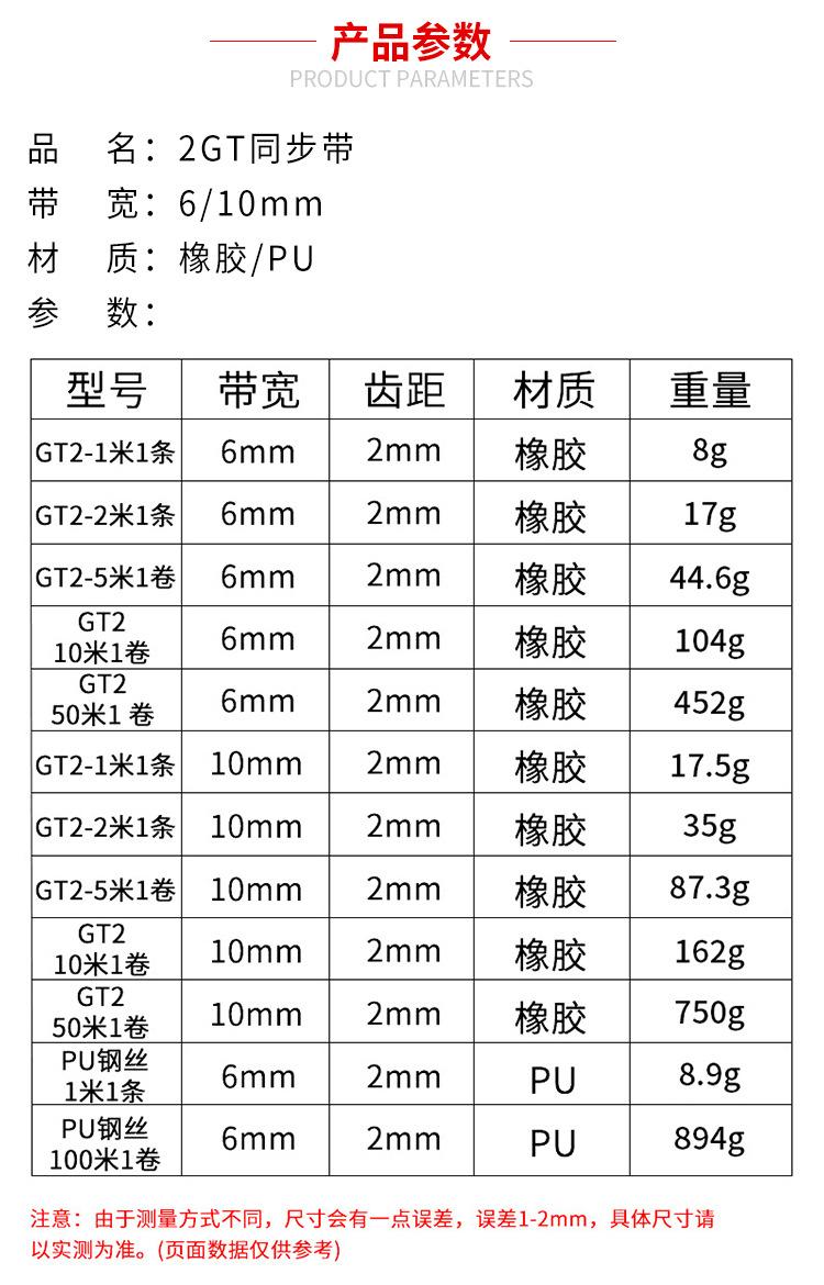 GT2-Bandwidth 6MM(1 m 1 bar), GT2-Bandwidth 6MM(2 m 1 bar), GT2-Bandwidth 6MM(5 m 1 roll), GT2-Bandwidth 6MM(1...