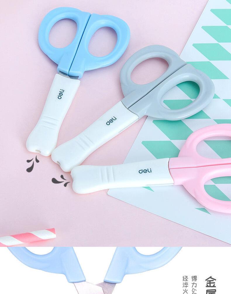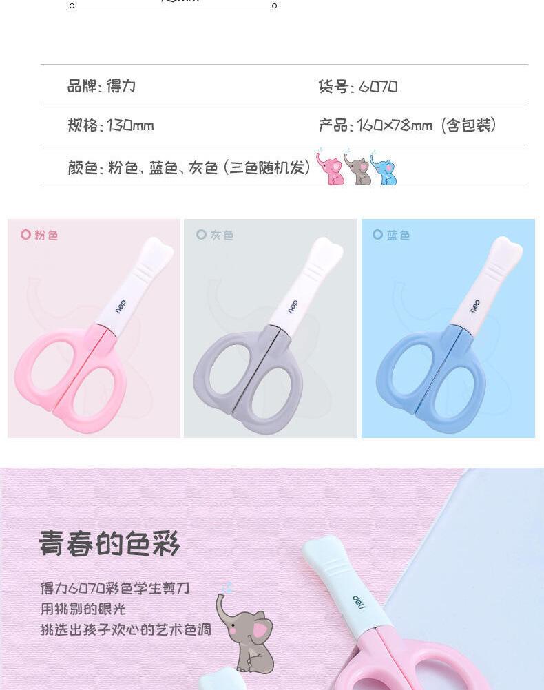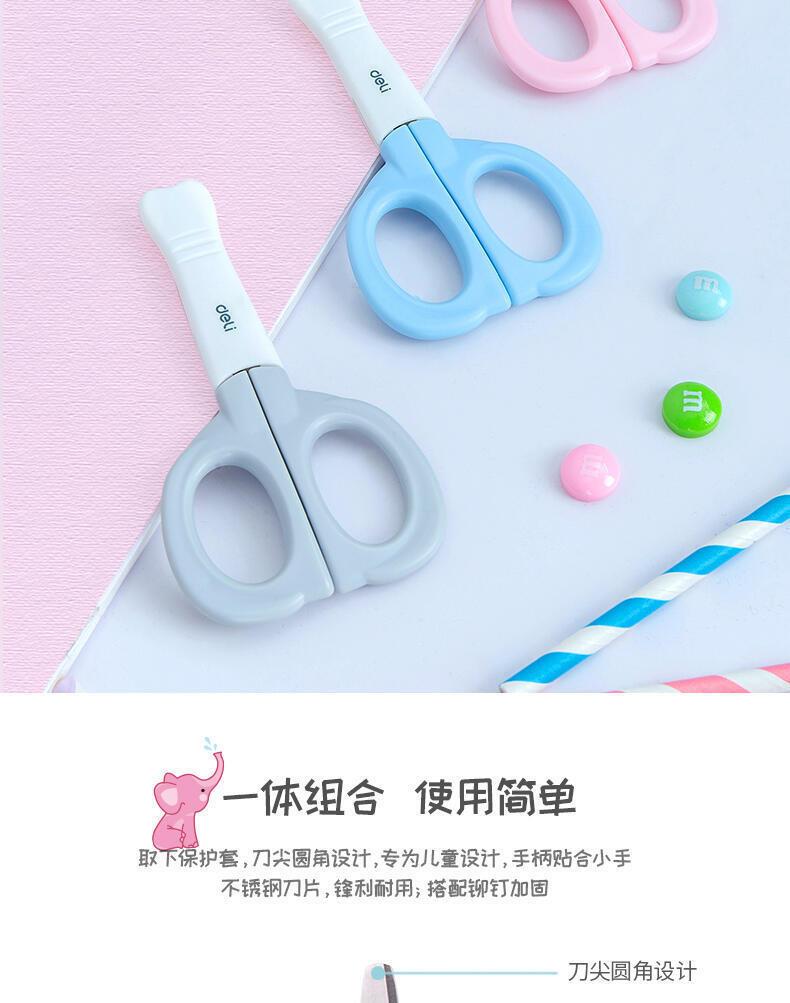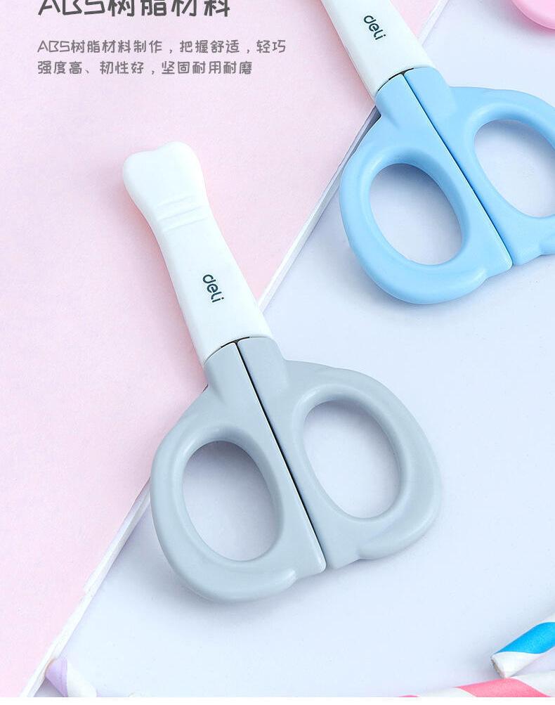 Tijeras de seguridad Deli 6070 con cabeza de cuchillo redondeada, cortador de papel de clase hecho a mano para niños, funda de plástico, tijeras para estudiantes, venta al por mayor