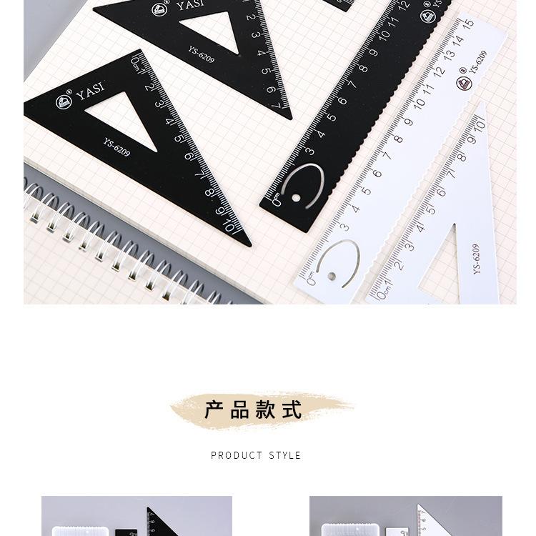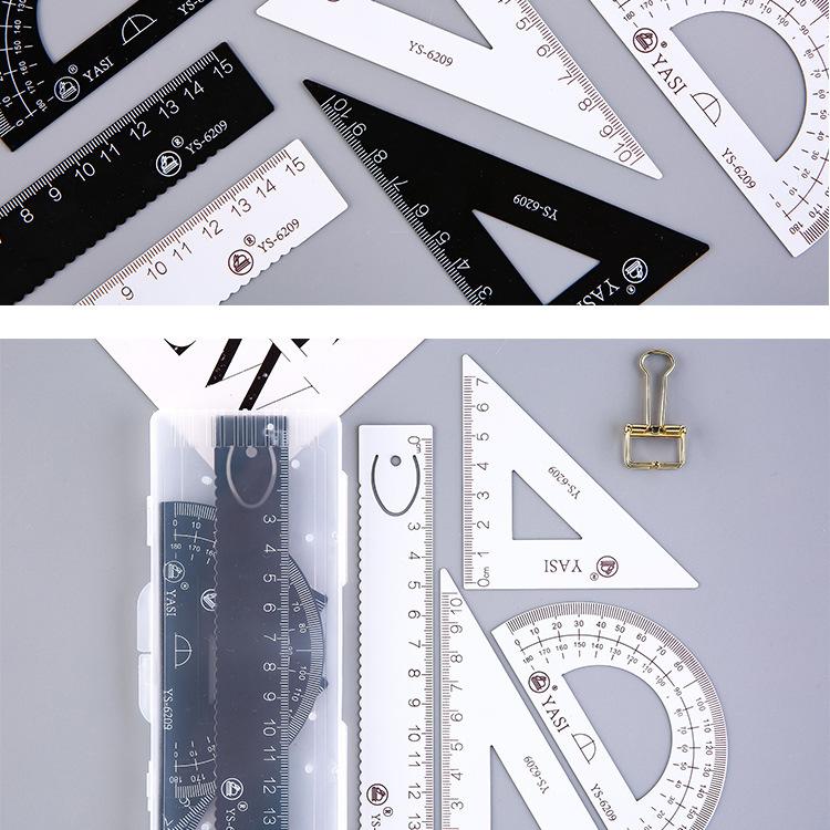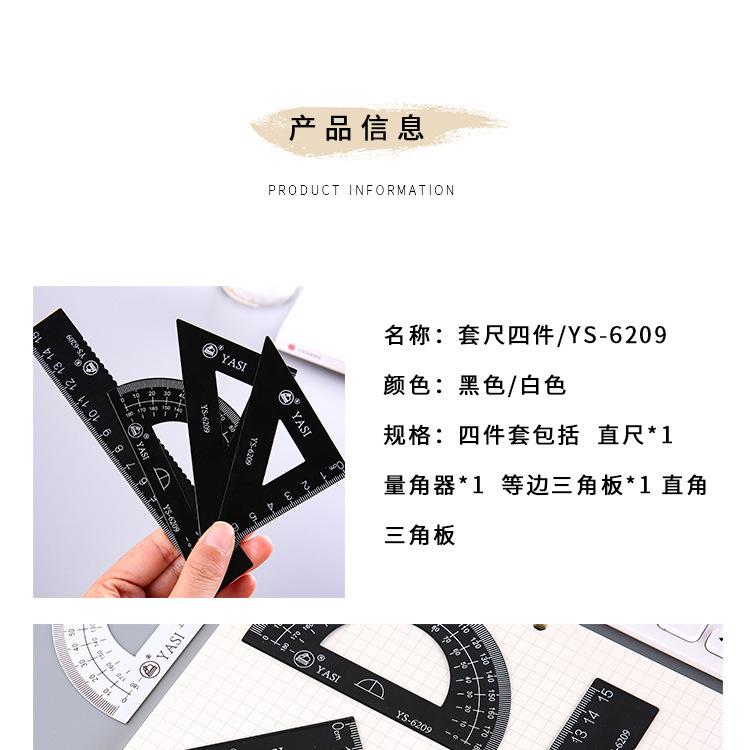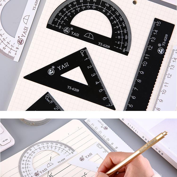 Regla de metal para medir dibujo juego de 4 piezas regla para estudiantes de primaria y secundaria Negro Traje de regla transportador de triángulo