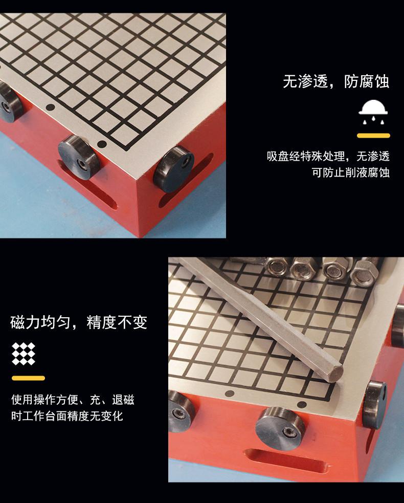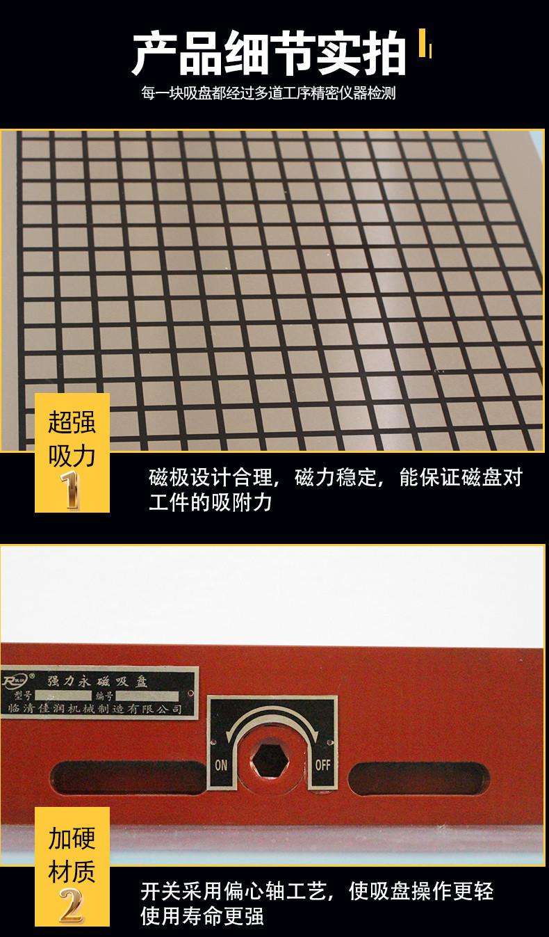 El plato magnético permanente de rejilla cuadrada superfuerte es adecuado para equipos de procesamiento CNC. Su potente fuerza magnética proviene de la combinación de polos magnéticos cuadrados. Los polos magnéticos están densamente distribuidos y la intensidad del campo magnético es elevada. La fuerza de succión puede alcanzar los 240 N/cm². Permite liberar la tensión interna de la pieza durante el reprocesamiento para obtener piezas de alta precisión.