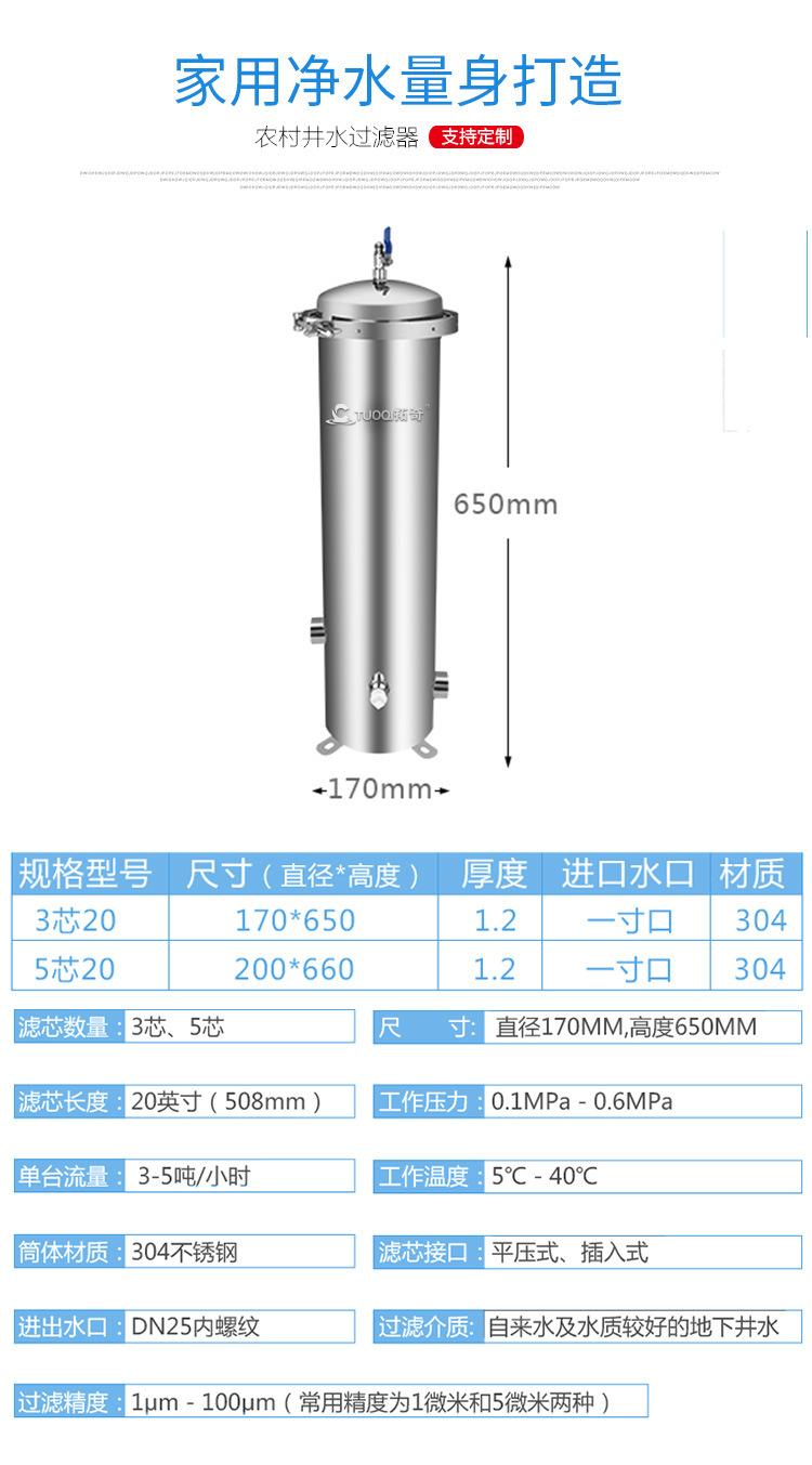 Three-core 20 inch 3000L/h, Five-core 20 inch 5000L/h
