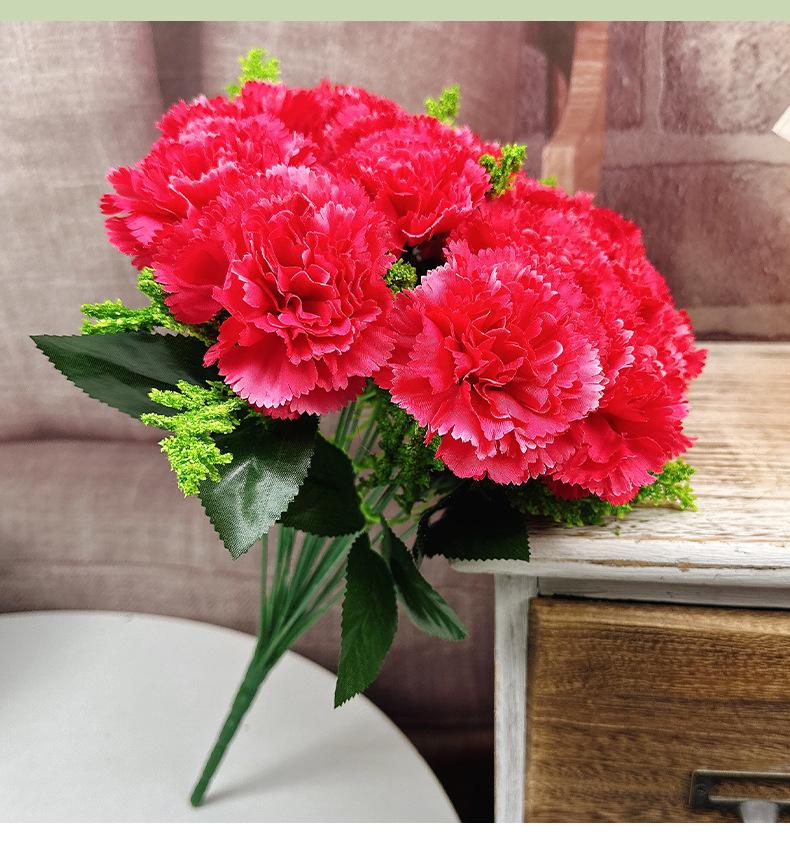 Clavel artificial con flores, regalo navideño, foto, accesorios de flores falsas, decoración del hogar, ramo de flores de seda de varias cabezas