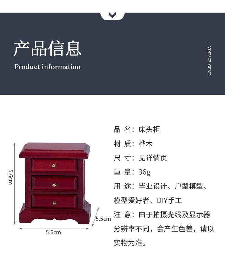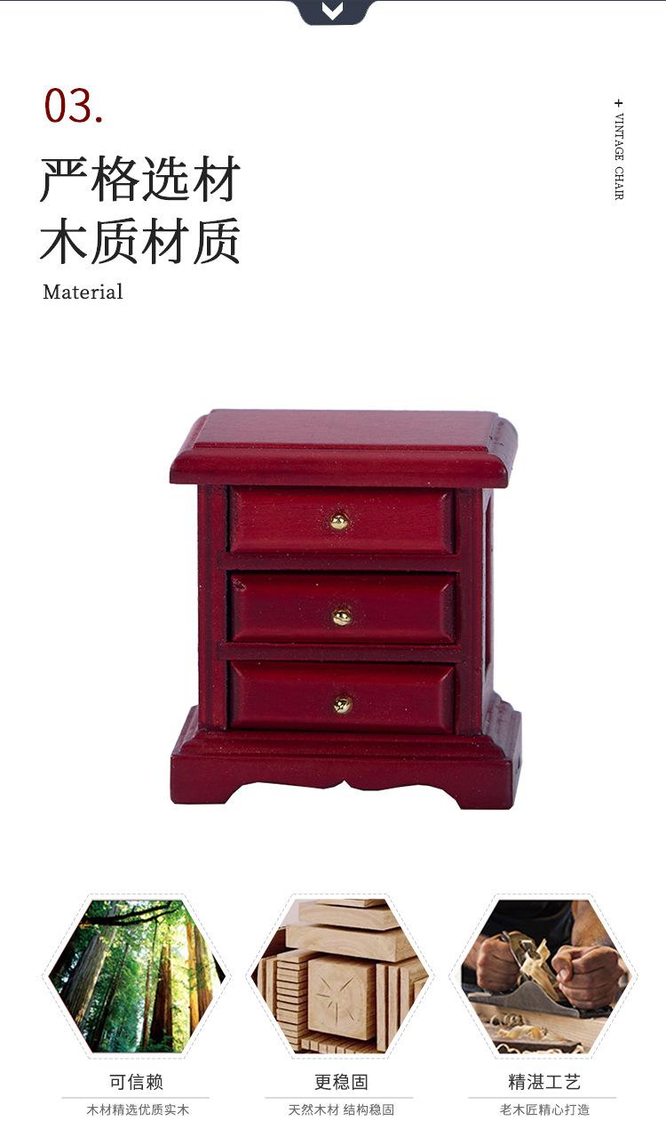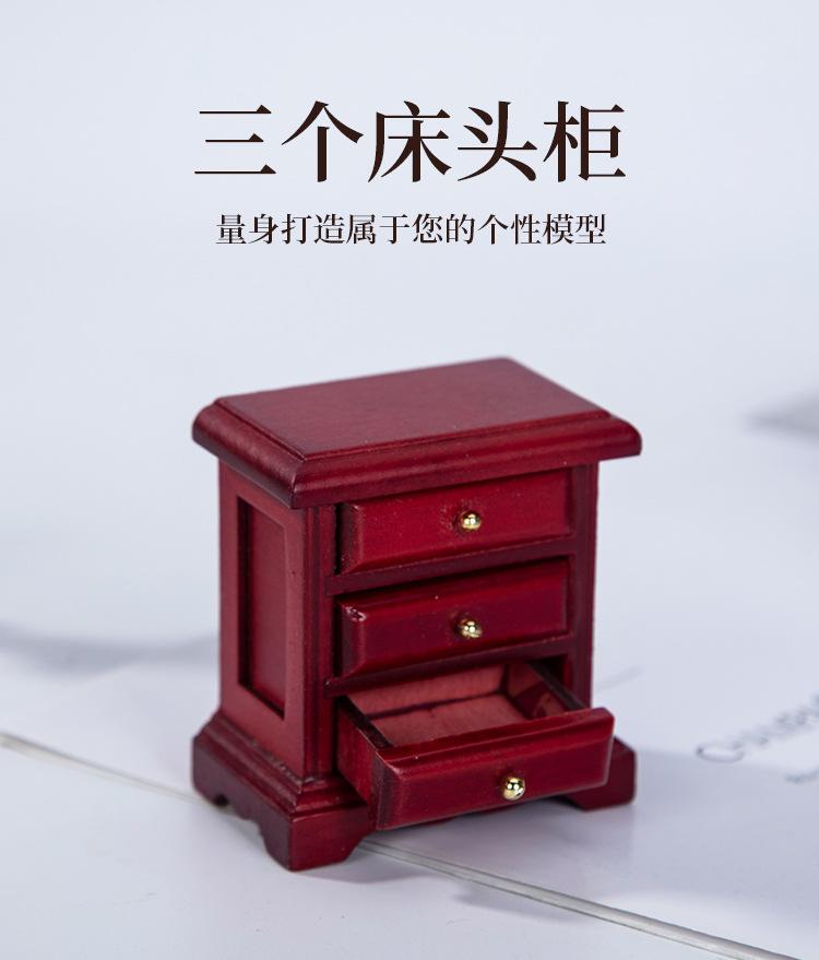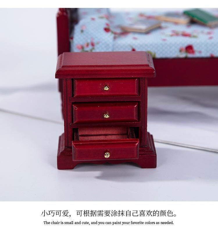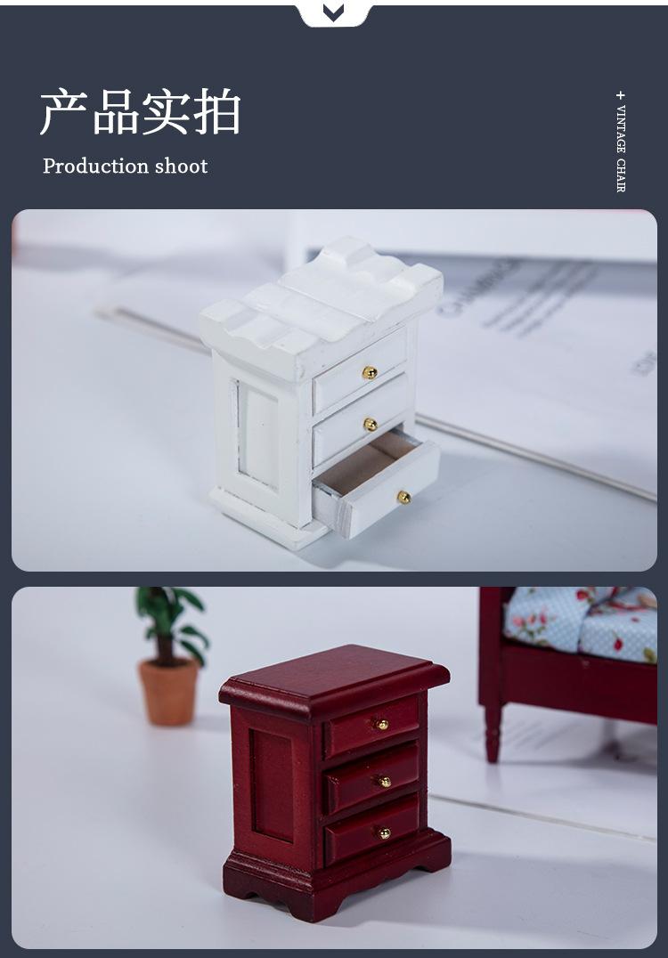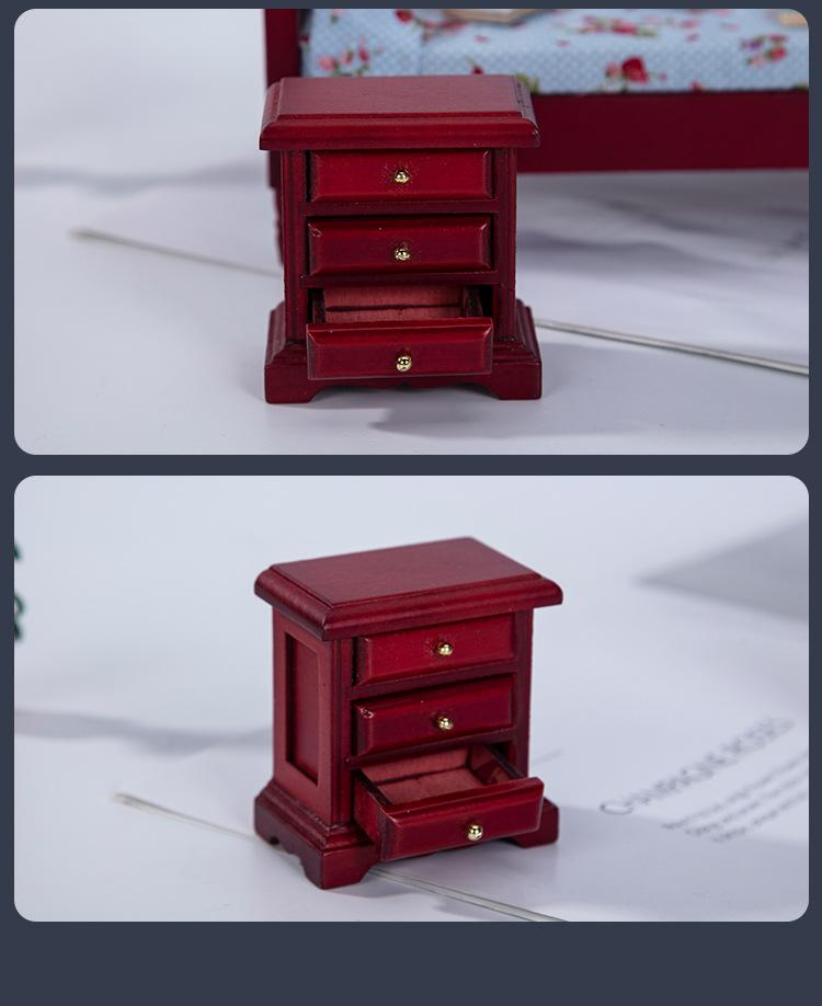 Casa de muñecas 1:12 mini muebles de casa de muñecas, modelo de dormitorio, mesita de noche de tres compartimentos, bolsillo, artesanías de madera