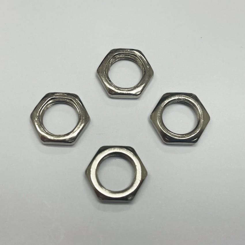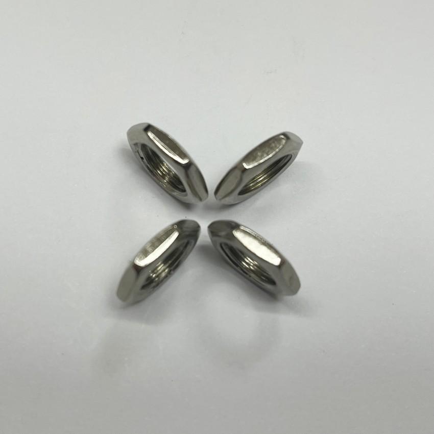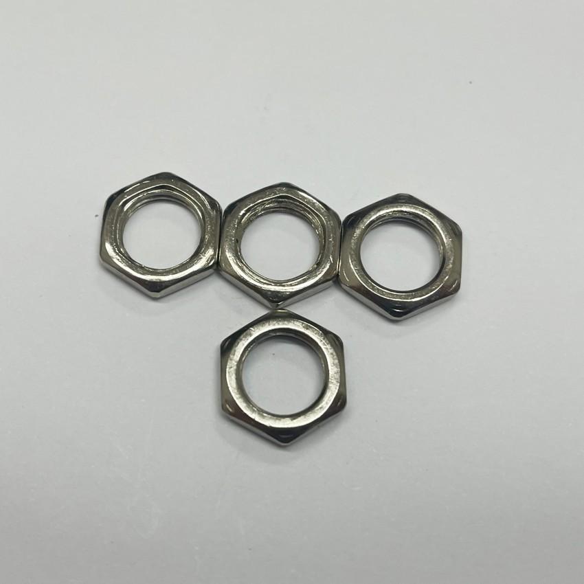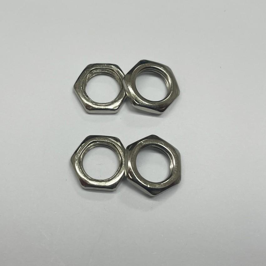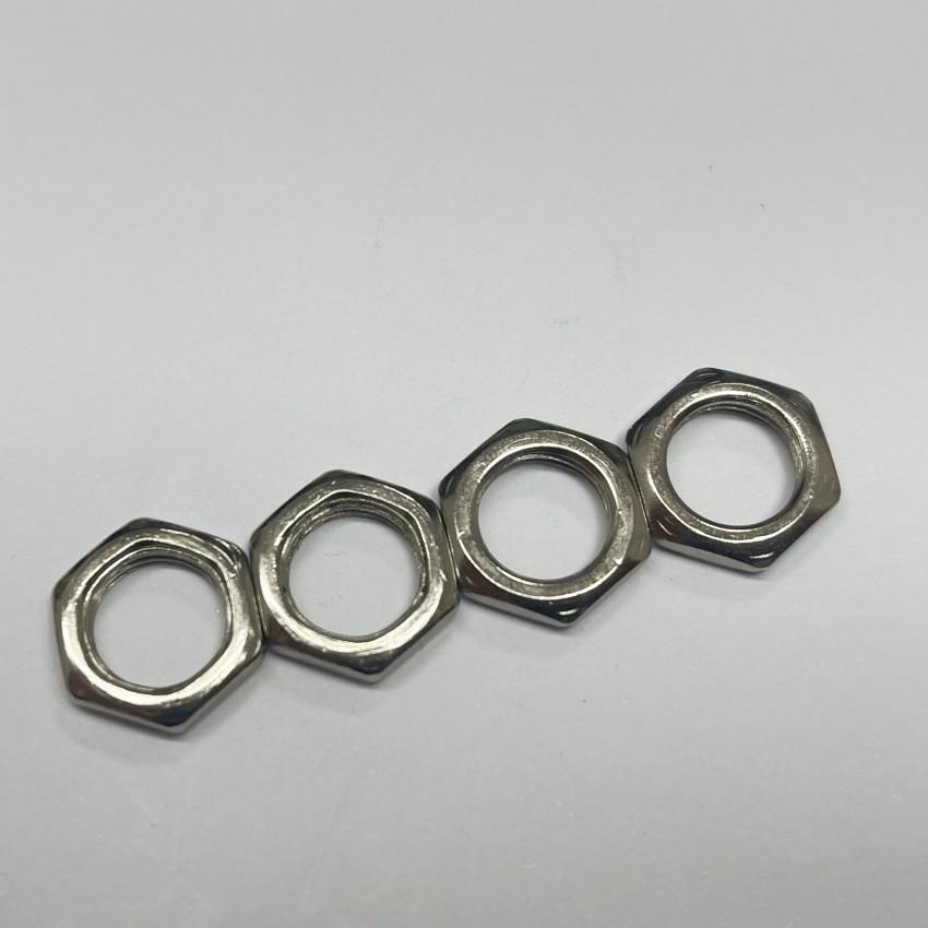 Las tuercas hexagonales delgadas, también conocidas como tuercas hexagonales extraplanas de paso fino, tienen el código de la norma nacional GB/T808-1988. Sus lados opuestos son generalmente similares a los de las tuercas hexagonales estándar, pero su grosor es menor y sus roscas también son más finas, lo que les da una apariencia más plana. Por eso se denominan tuercas hexagonales extraplanas de paso fino. Generalmente, se las conoce como tuercas delgadas. La norma nacional estipula que el diámetro de la rosca debe coincidir con el tamaño de la misma.paso(El ancho de dos hilos adyacentes), por ejemplo: hilo de 6 mm de diámetropasoEs una rosca de 1mm y 8mm de diámetro.pasoEl paso de rosca de las roscas de 1,25 mm y 10 mm es de 1,5 mm, y el de las roscas de 12 mm es de 1,75 mm. Si el paso de la tuerca es menor que el especificado en la norma nacional, se considera una tuerca de paso fino.