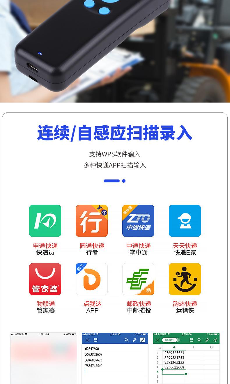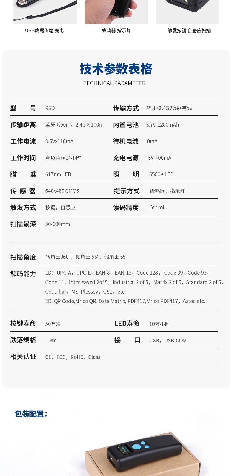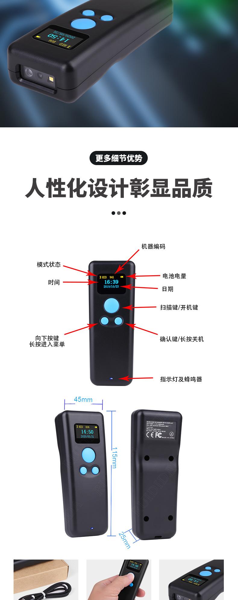 Escáner de código de barras inalámbrico portátil mini RIDA R5D 2D Bluetooth multimodo con pantalla