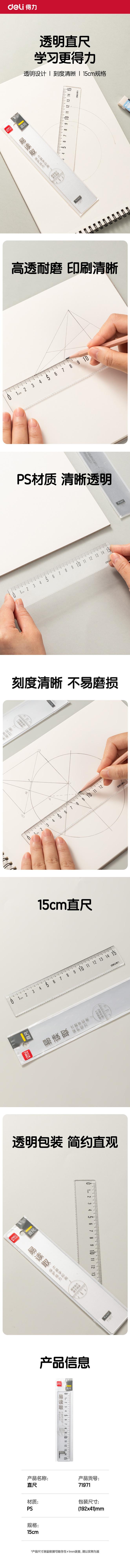 Regla transparente Deli 71971 de 15 cm, papelería para estudiantes, regla creativa simple de Corea, venta al por mayor