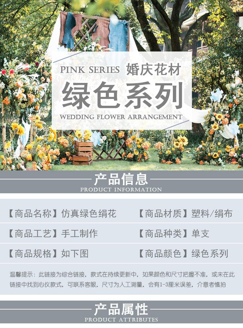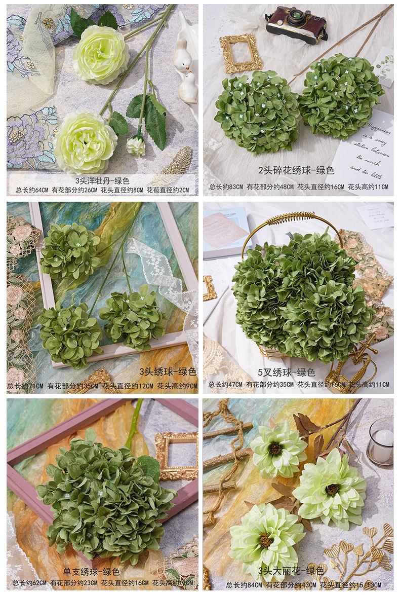 Ramo de flores artificiales verdes de seda hecho a mano para boda, flores decorativas artificiales, arreglos florales para boda al por mayor
