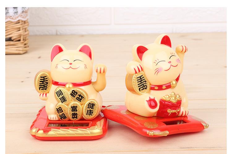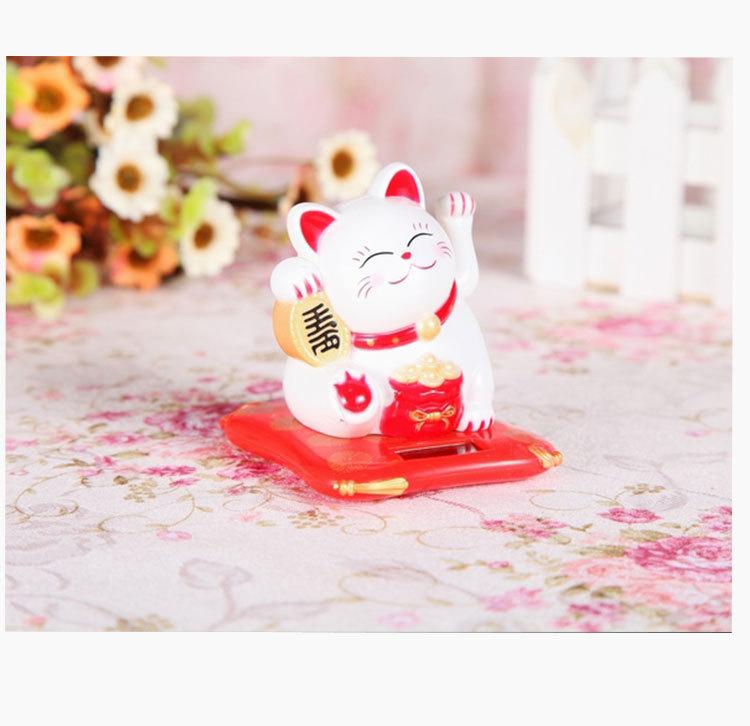 Gato de la Fortuna de 2.5 pulgadas con Mano Ondulante Atrae Riqueza y Tesoro Gato de la Fortuna Ondulante con Suministro de Energía Solar Atrae Riqueza y Tesoro Textura Creativa Adorno para Coche Regalo Horneado