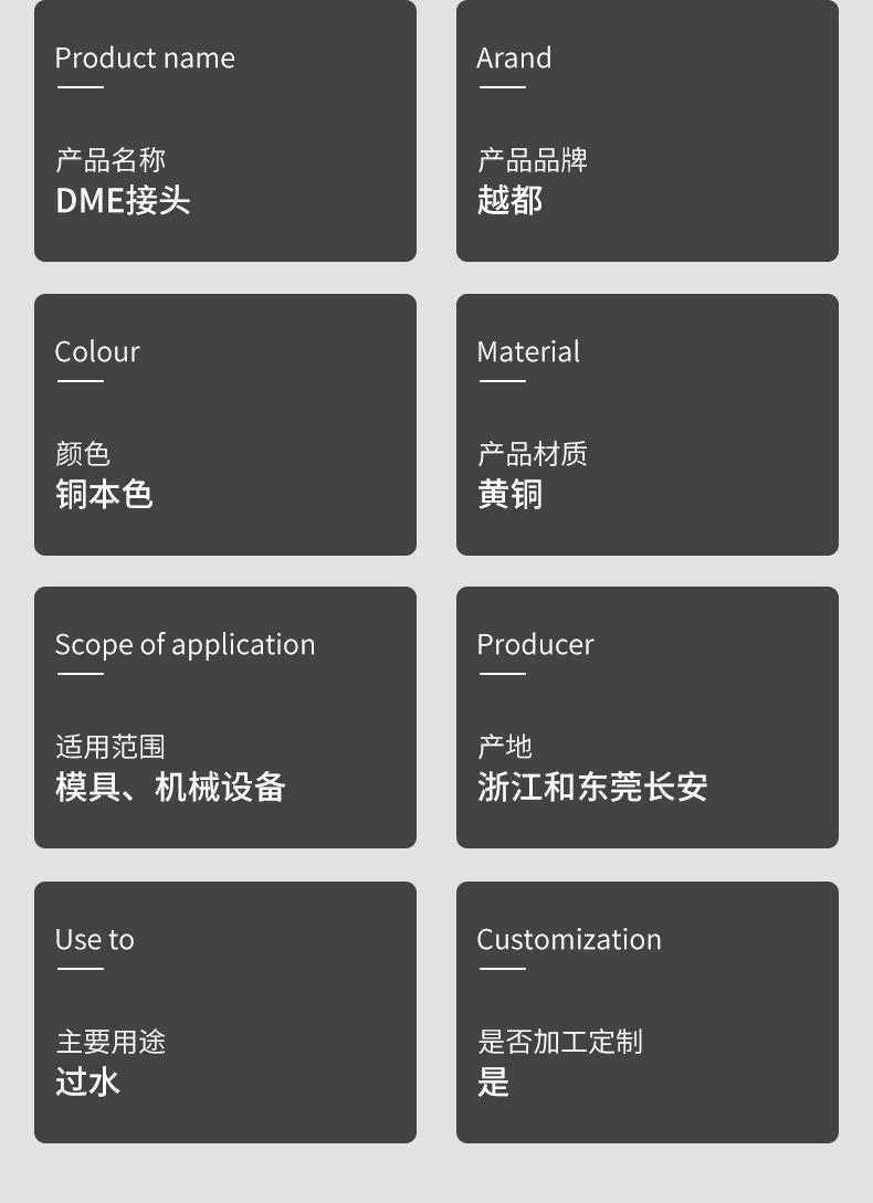Conector neumático Conector americano DME cobre piezas estándar para molde conector de tubería accesorios de ferretería conector rápido