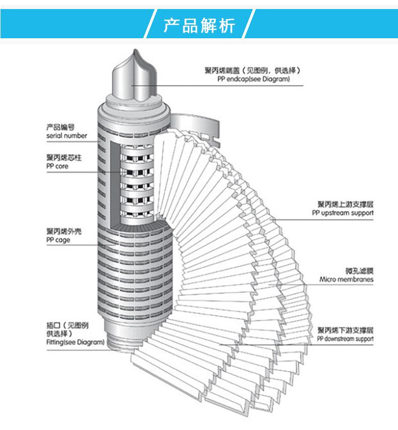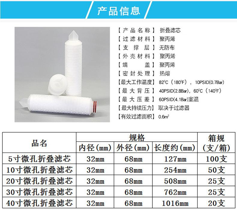 Elemento Filtrante Plegable PES PTFE Hidrofóbico Hidrofílico Elemento Filtrante de PTFE Fuerte Resistencia a la Corrosión Electrónica
