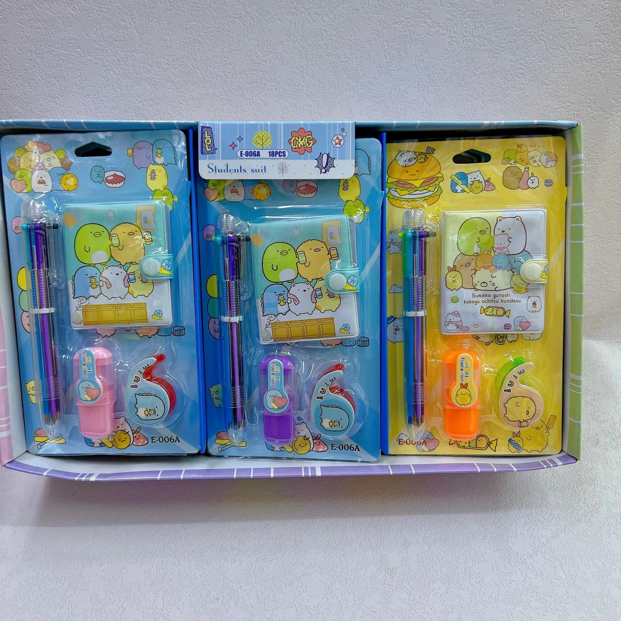 Comercio exterior lindo caricatura tuanzi lindo bolígrafo de 6 colores botón libro resaltador cinta combinación traje de papelería para estudiantes