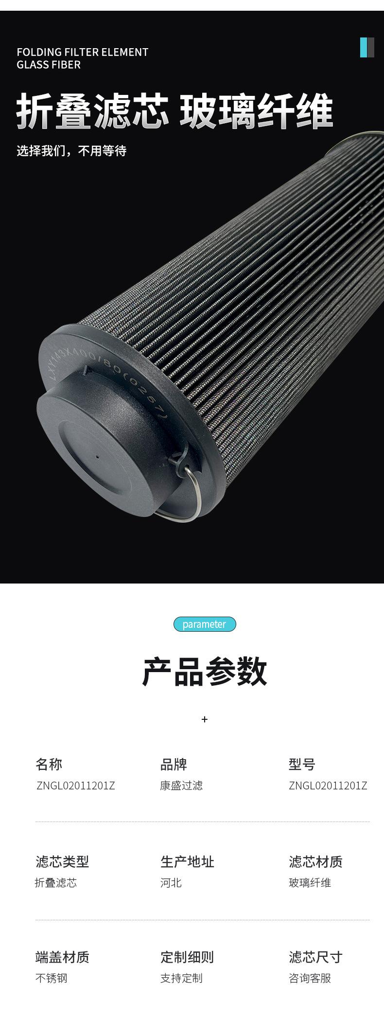 Elemento filtrante plegable de fibra de vidrio para estación de suministro de aceite fino ZNGL02011201Z, elemento filtrante de aceite hidráulico para bomba de aceite
