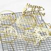 Tarjeta de acrílico para tarta de cumpleaños con borde cruzado, 6 unidades, color negro, dorado y rosa.