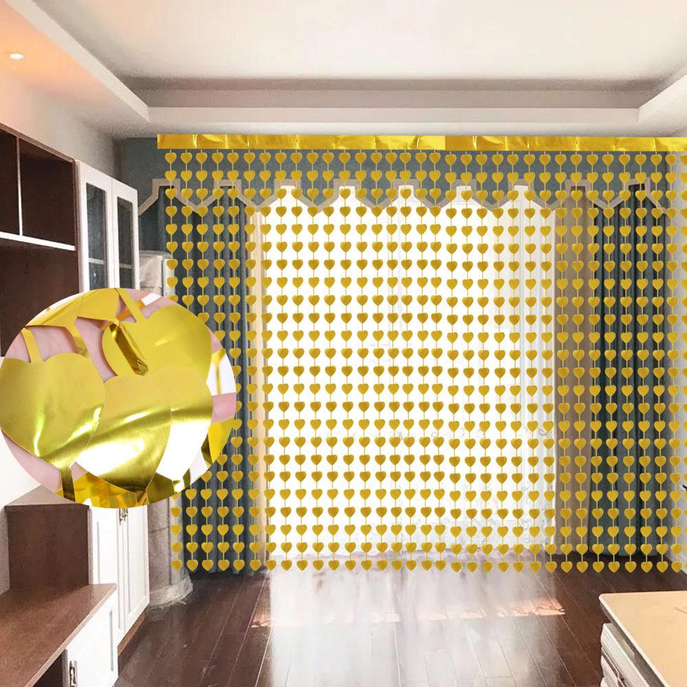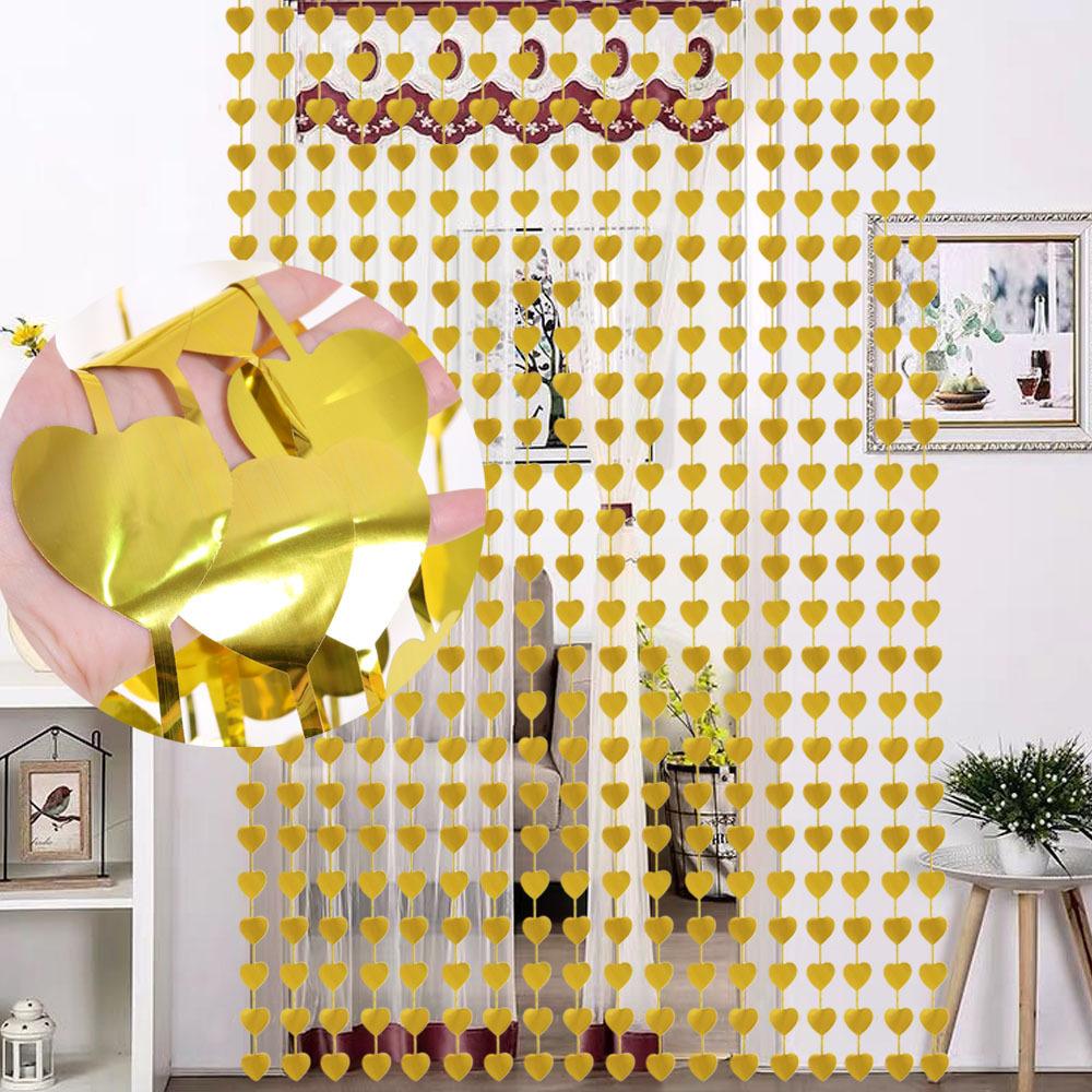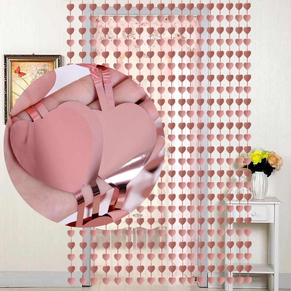 Cortina de Lluvia de Seda con Corazón para el Día de San Valentín Oro Rosa Cortina para Puerta Decoración para Fiesta de Cumpleaños Suministros para Habitación de Boda Cortina Decorativa de Lluvia de Seda con Corazón