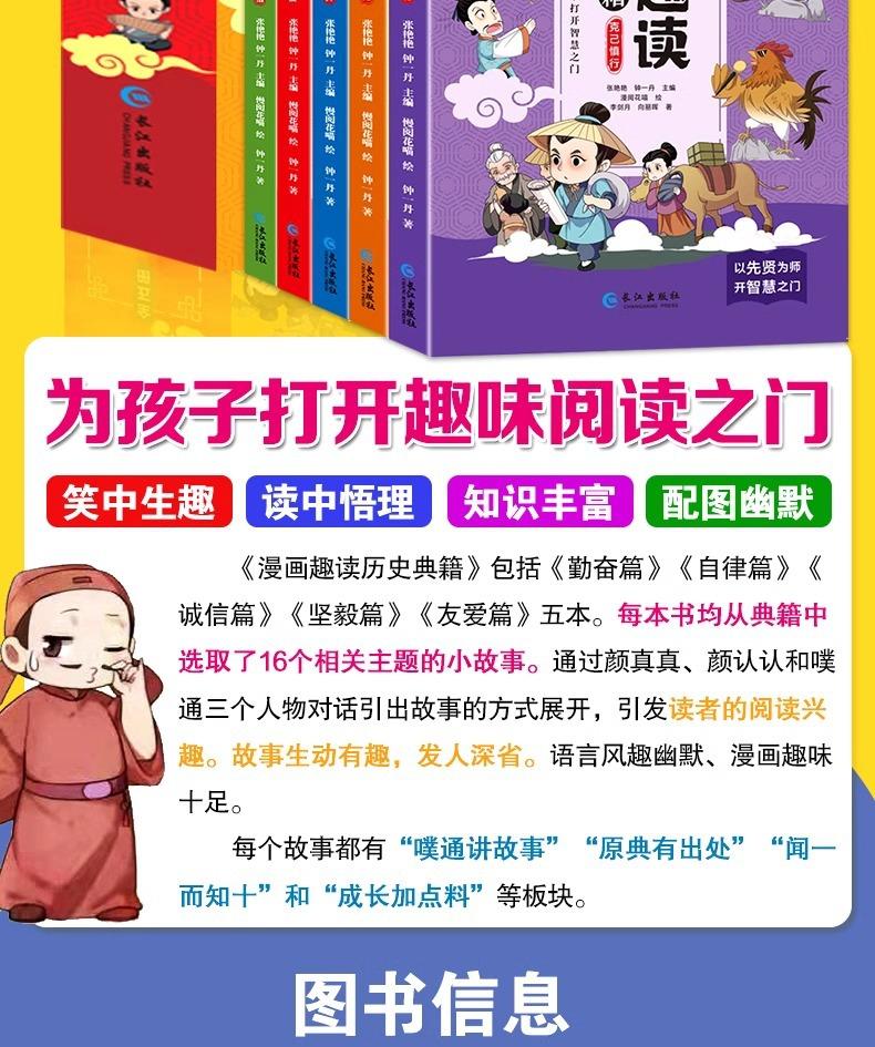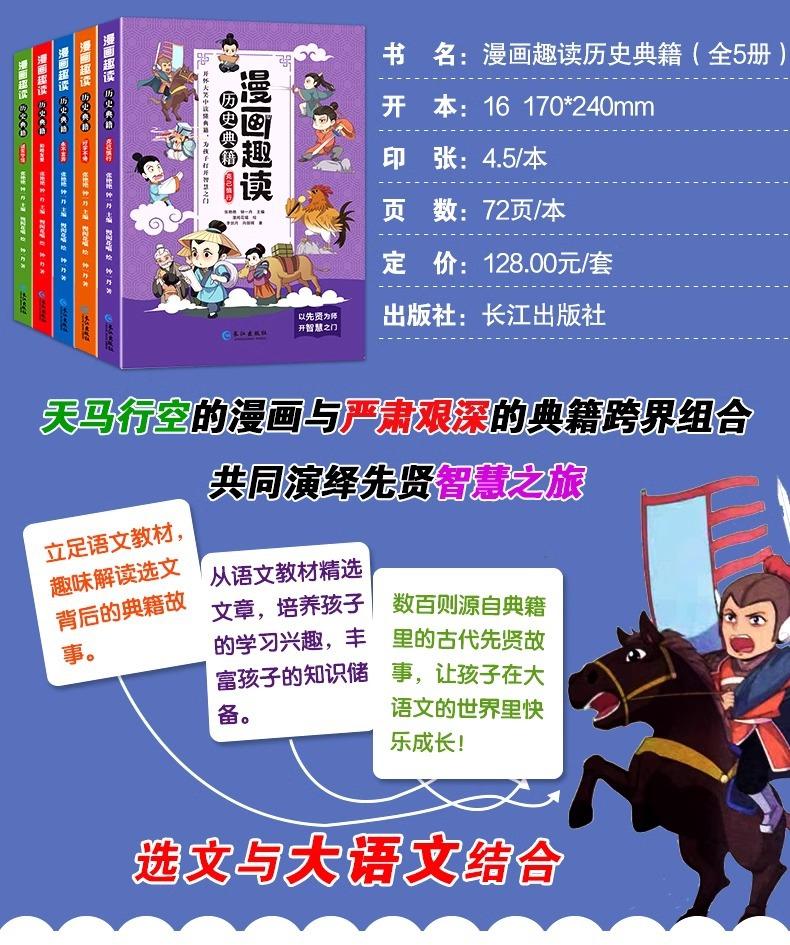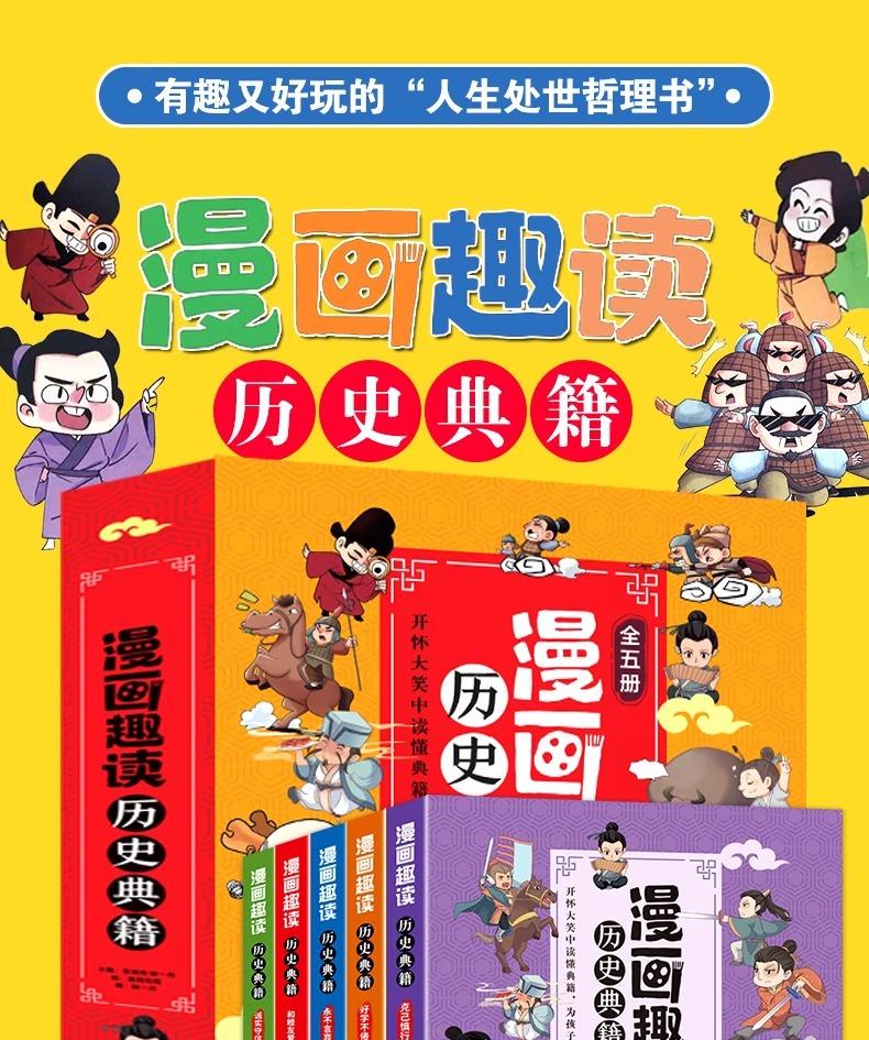Libros de historia de lectura de cómics, conjunto completo de 5 libros, historias de historia de estudiantes de primaria, cómic, lectura extracurricular de estudiantes de primaria