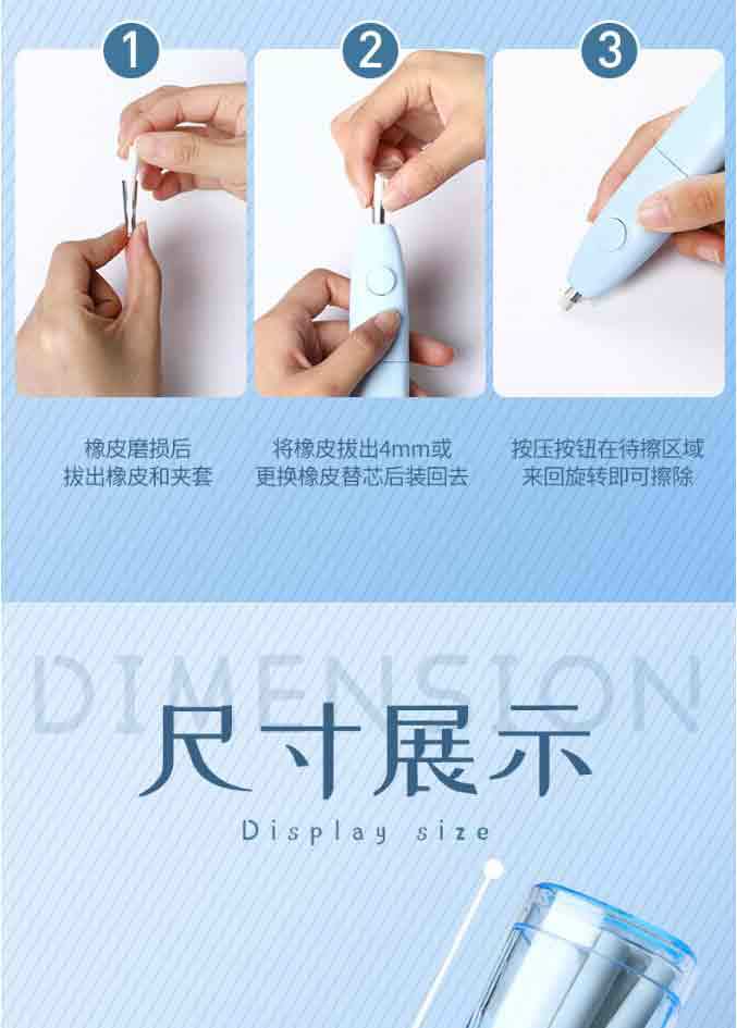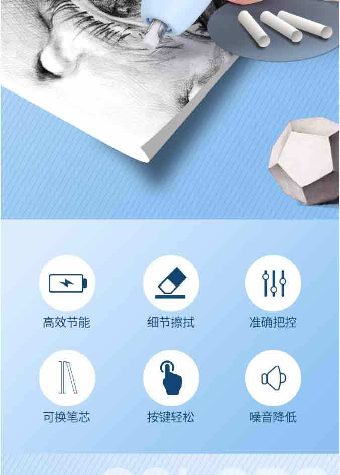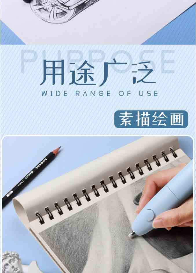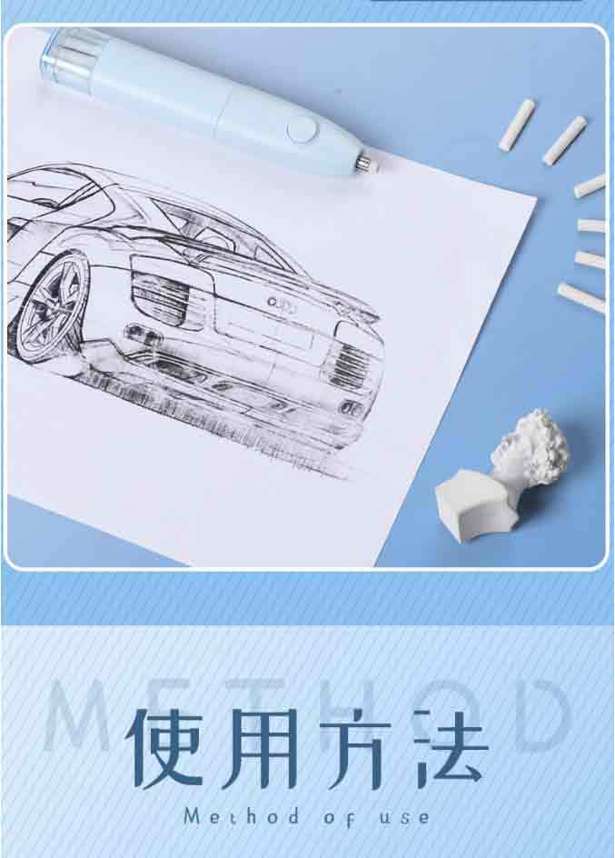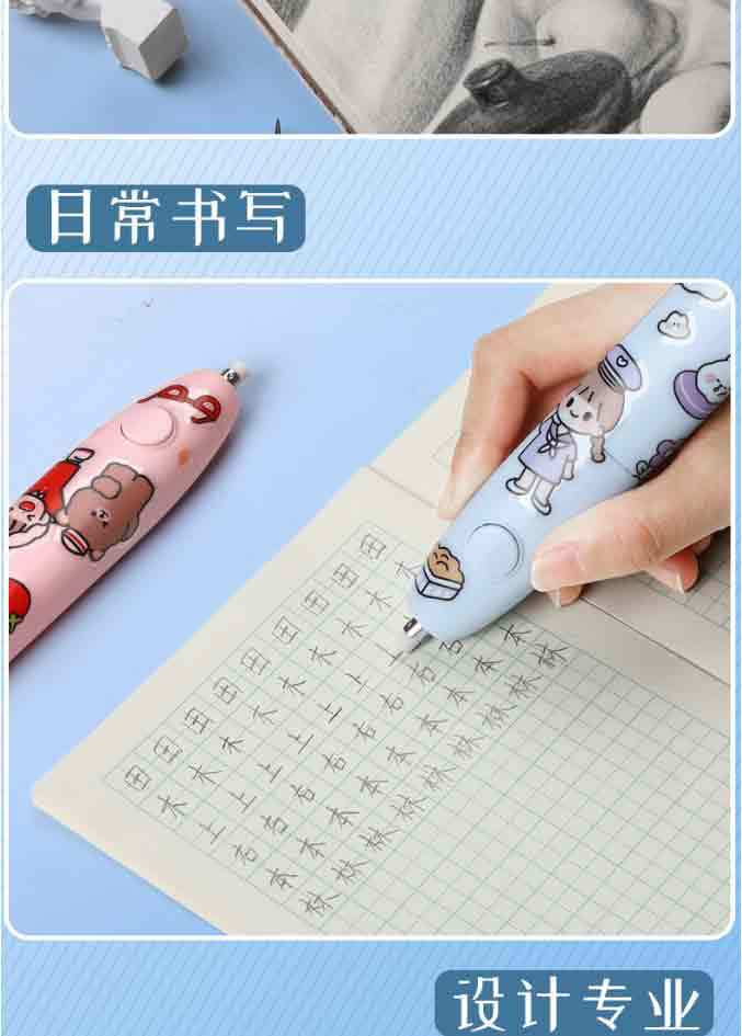 Borrador eléctrico resalta el boceto que los estudiantes usan el borrador automático, borrador multifuncional para reemplazar el borrador creativo central