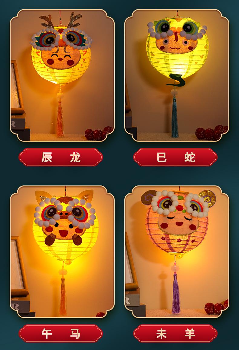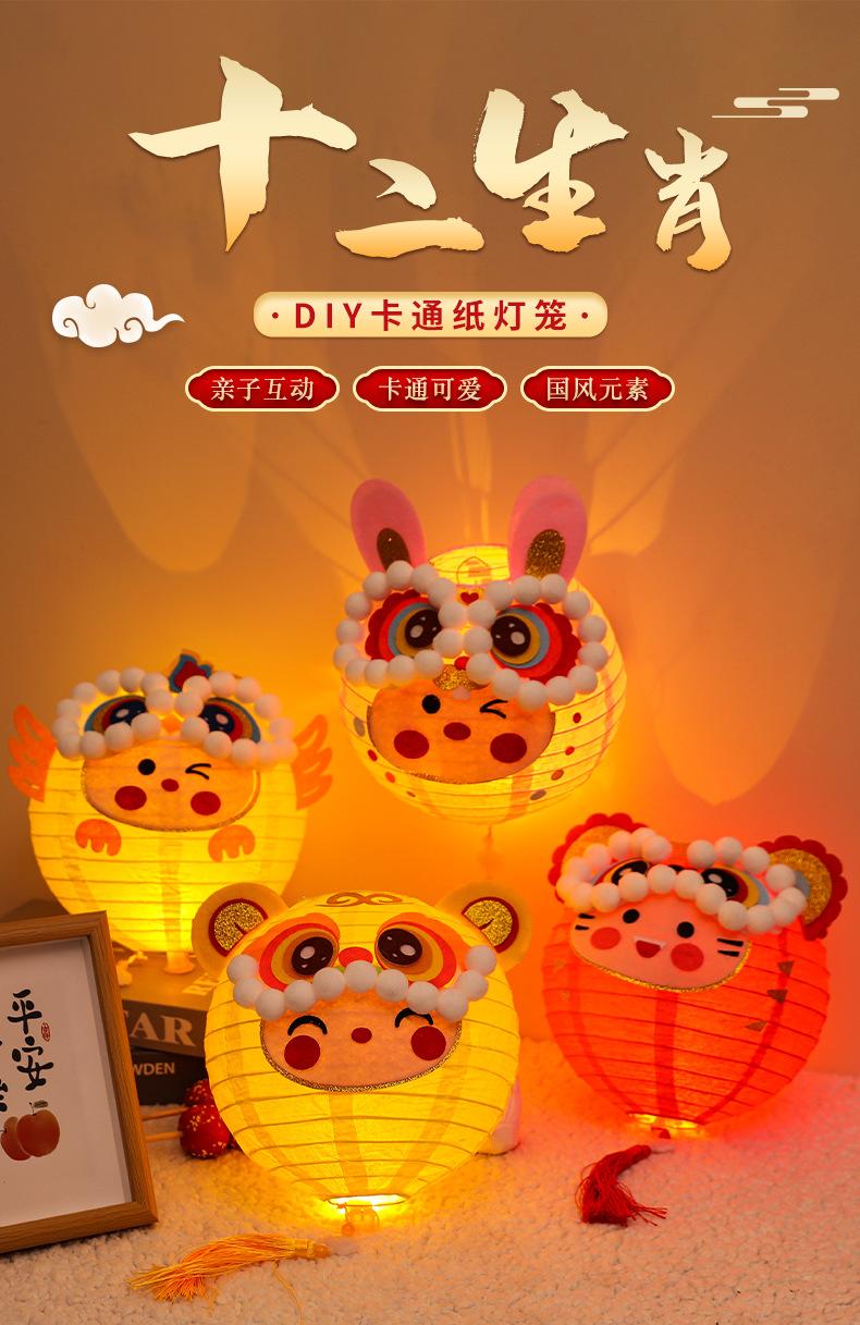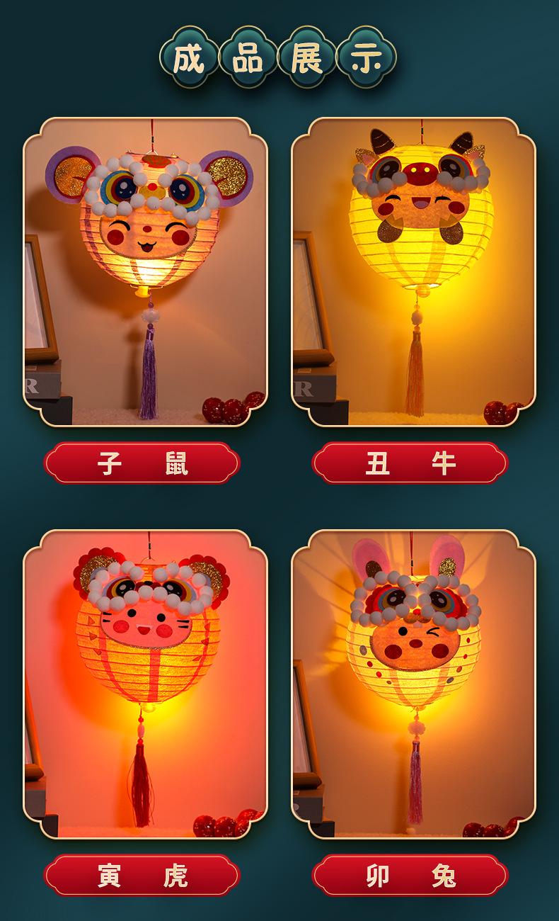 Linternas del Festival de Primavera Materiales Hechos a Mano para Niños de Jardín de Infancia Linternas Creativas de Dibujos Animados del Zodíaco DIY Linternas Portátiles Brillantes