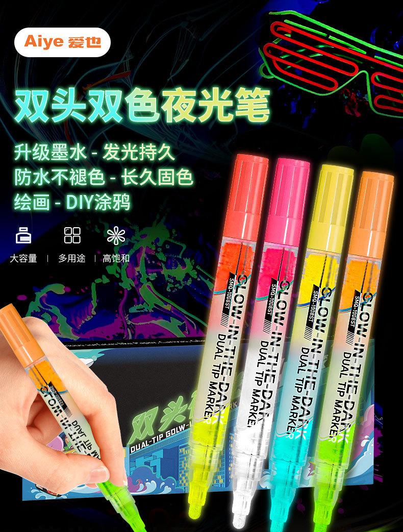Aiye Pluma Luminosa Bicolor de Doble Punta Impermeable Marcador que No se Desvanece Estudiante DIY Pintura Colorida Resaltador Luminoso