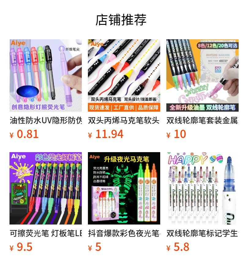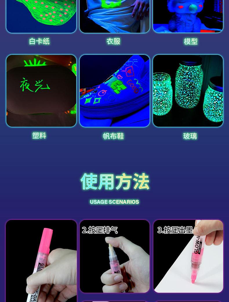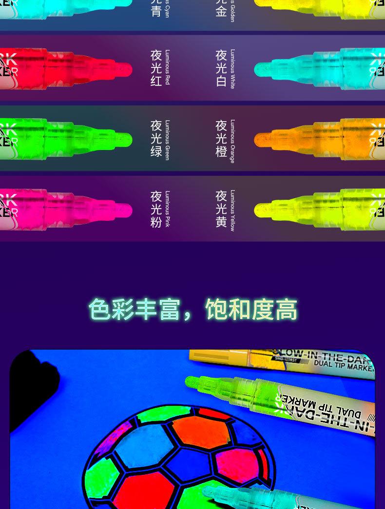 Orange green luminous pen, yellow red luminous pen, Golden Blue Luminous Pen, Pink white luminous pen, Chinese...