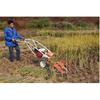 La hileradora consta de dos partes: el motor principal y la hileradora. El motor principal está compuesto por el motor, la caja de cambios, el bastidor, los pasamanos multifuncionales para controlar el movimiento y los neumáticos ensanchados. Actualmente, el motor principal consta principalmente de la caja de cambios, el bastidor de la hileradora y la rueda de estrella para la remoción de los cultivos.