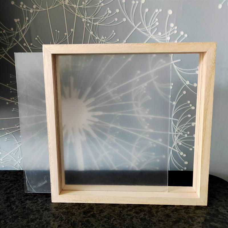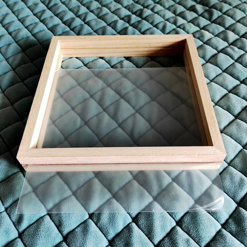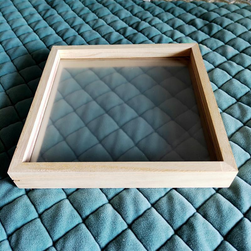 El marco está hecho con bordes de madera de tung y vidrio orgánico. Antes de usarlo, se retira la película protectora del vidrio orgánico y se aplica. Se puede pintar con pintura acrílica.