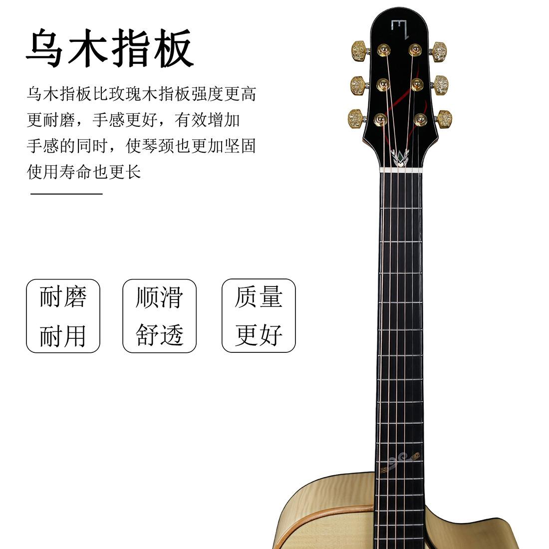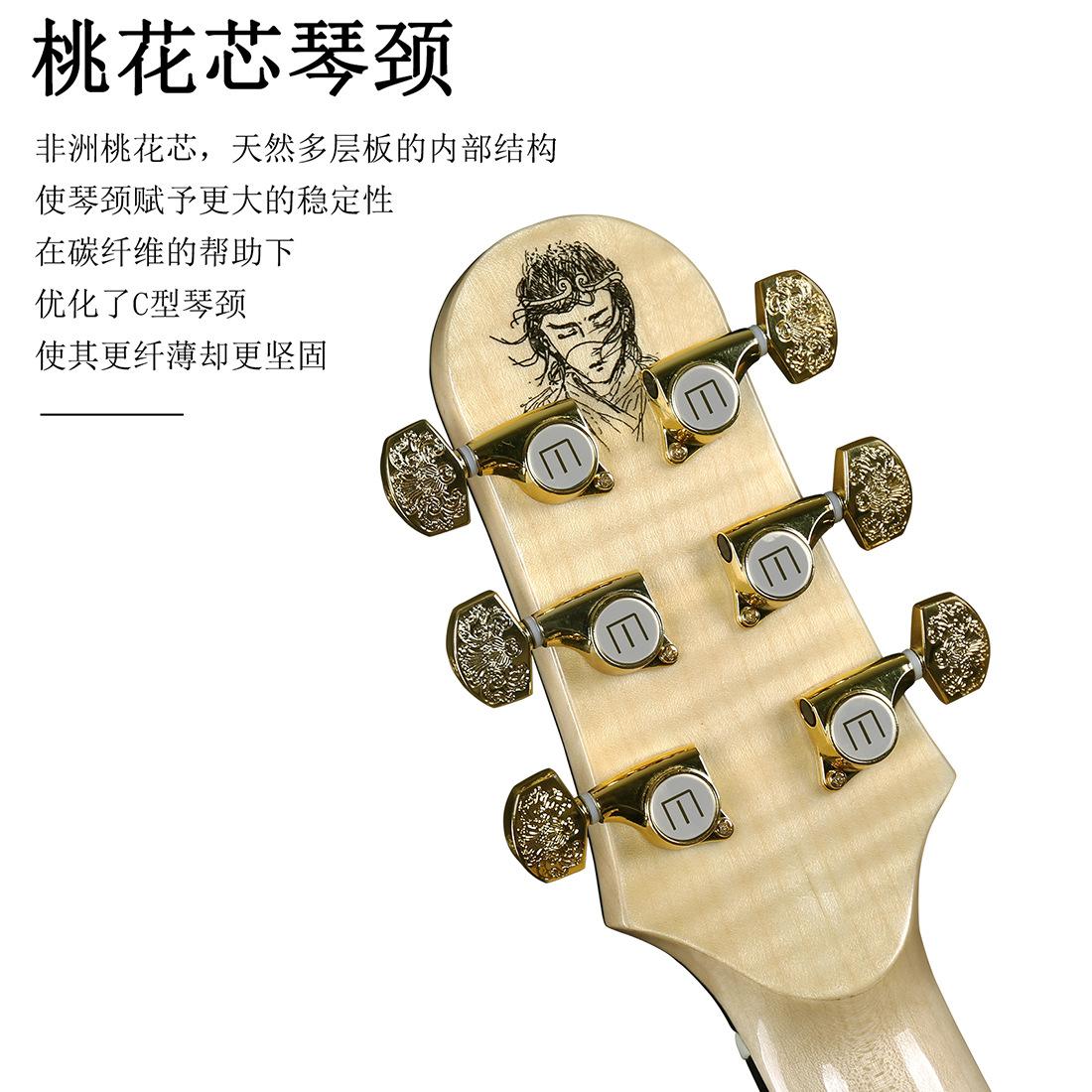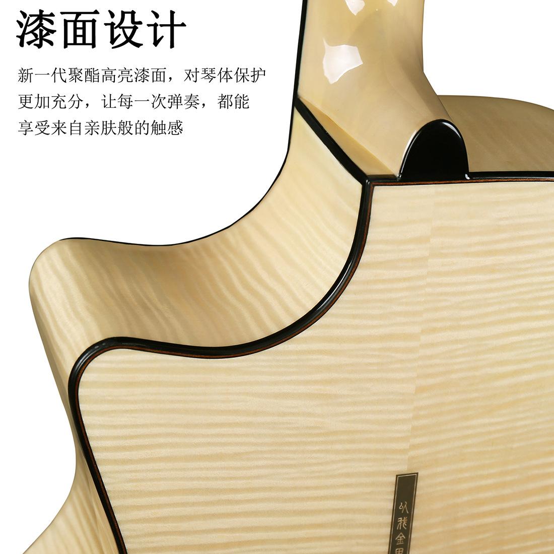 Hazlo más delgado pero más fuerte, buena madera natural, selección de material áspero, panel de chapa de abeto + arce tigre seleccionado, la textura de la madera de abeto es clara, sonido rico en capas Una combinación especial con arce tigre El acceso al sonido es transparente y brillante, diseño de superficie, una nueva generación de pintura de resaltado de poliéster, más completa para la protección del cuerpo del piano, deja que cada juego, pueda disfrutar de la tactilidad de la piel cercana, diapasón de ébano, diapasón de ébano que la intensidad del diapasón de palisandro más alta, más resistente al desgaste, se siente mejor, aumenta efectivamente Al mismo tiempo, hace que el cuello sea más sólido y la vida útil es más larga. |