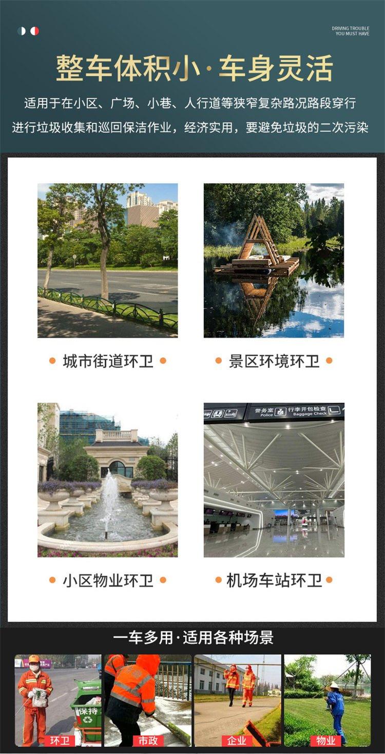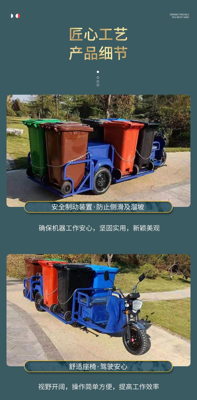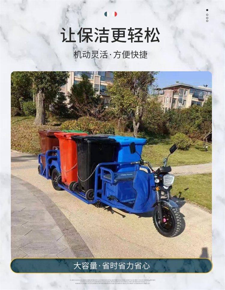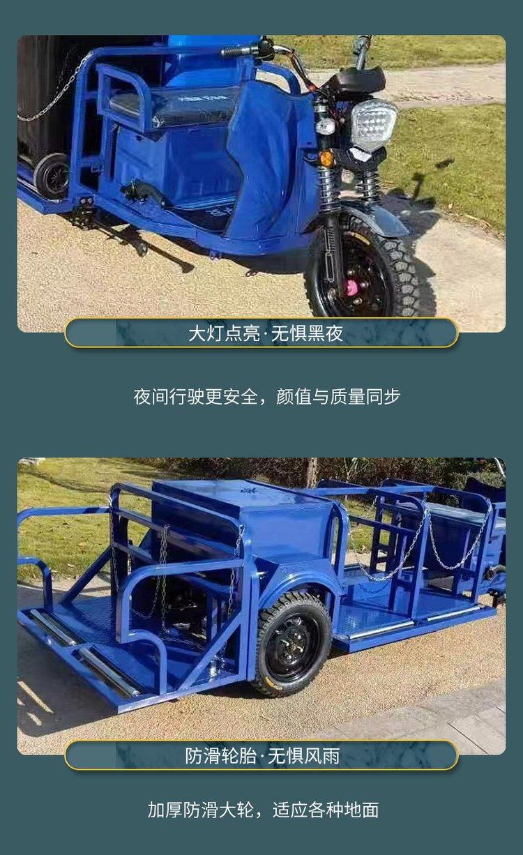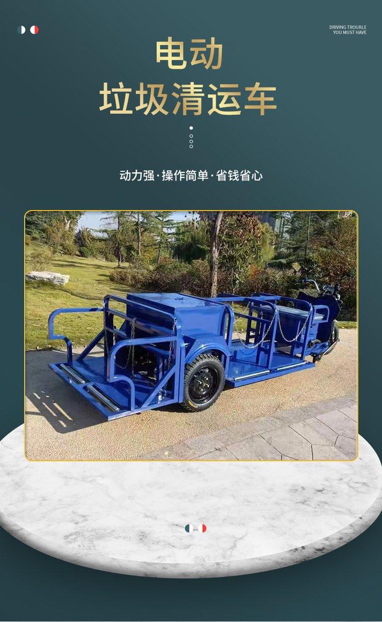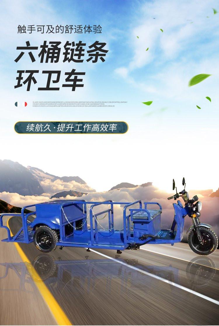 Vehículo de limpieza eléctrico de tres ruedas de Chengde, vehículo de recolección de basura plana de gran capacidad, vehículo de saneamiento de seis barriles.